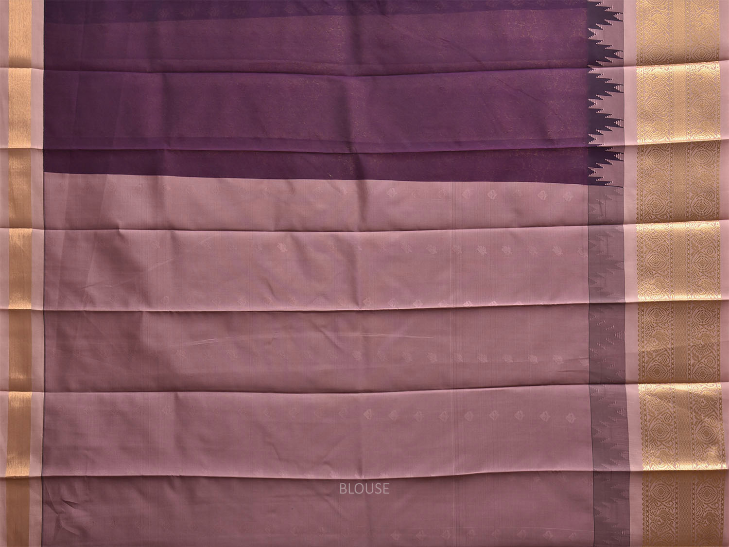 Purple and Light Pink Gadwal Cotton Viscose Saree with Temple Border and Pallu Design. Gadwal Sarees are known for their tradtional design of border and pallu made of silk and body being either cotton or silk. They are known as Sico sarees for border and pallu being silk and body being cotton. We advice dry clean for fabric care.