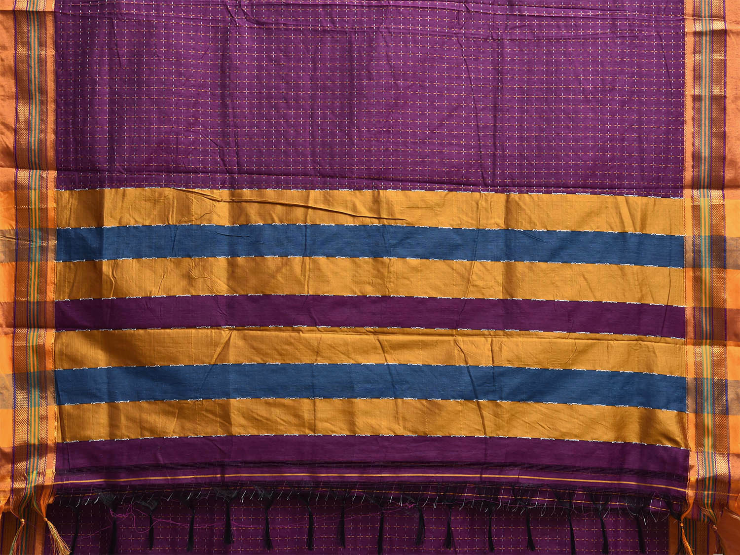 Purple and Yellow ilkal Cotton Viscose Saree with Checks and Strips Pallu Design. For fabric care we advise gentle handwash separately.