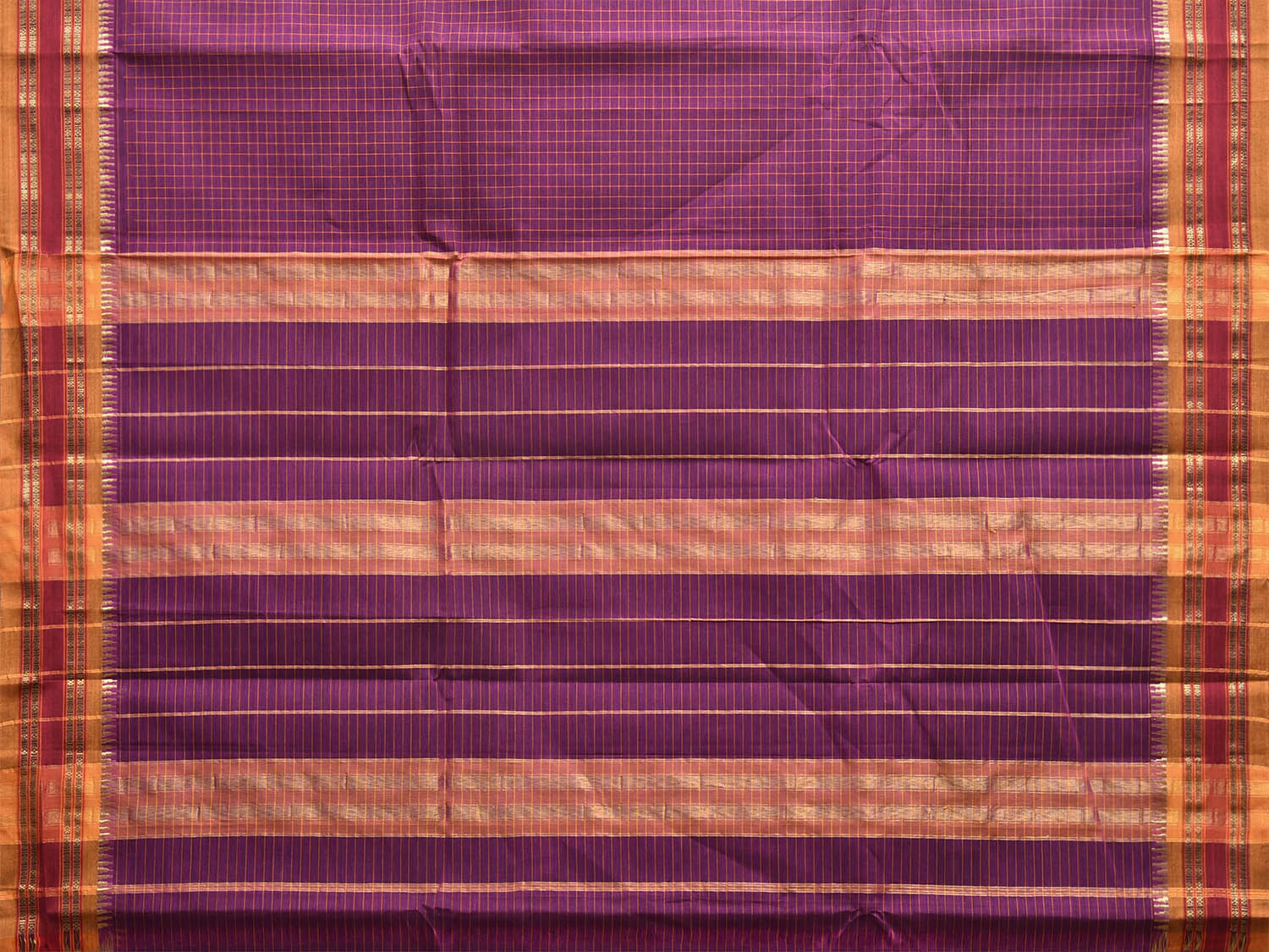 Purple and Yellow Narayanpet Cotton Handloom Saree with Checks Design No Blouse np1284