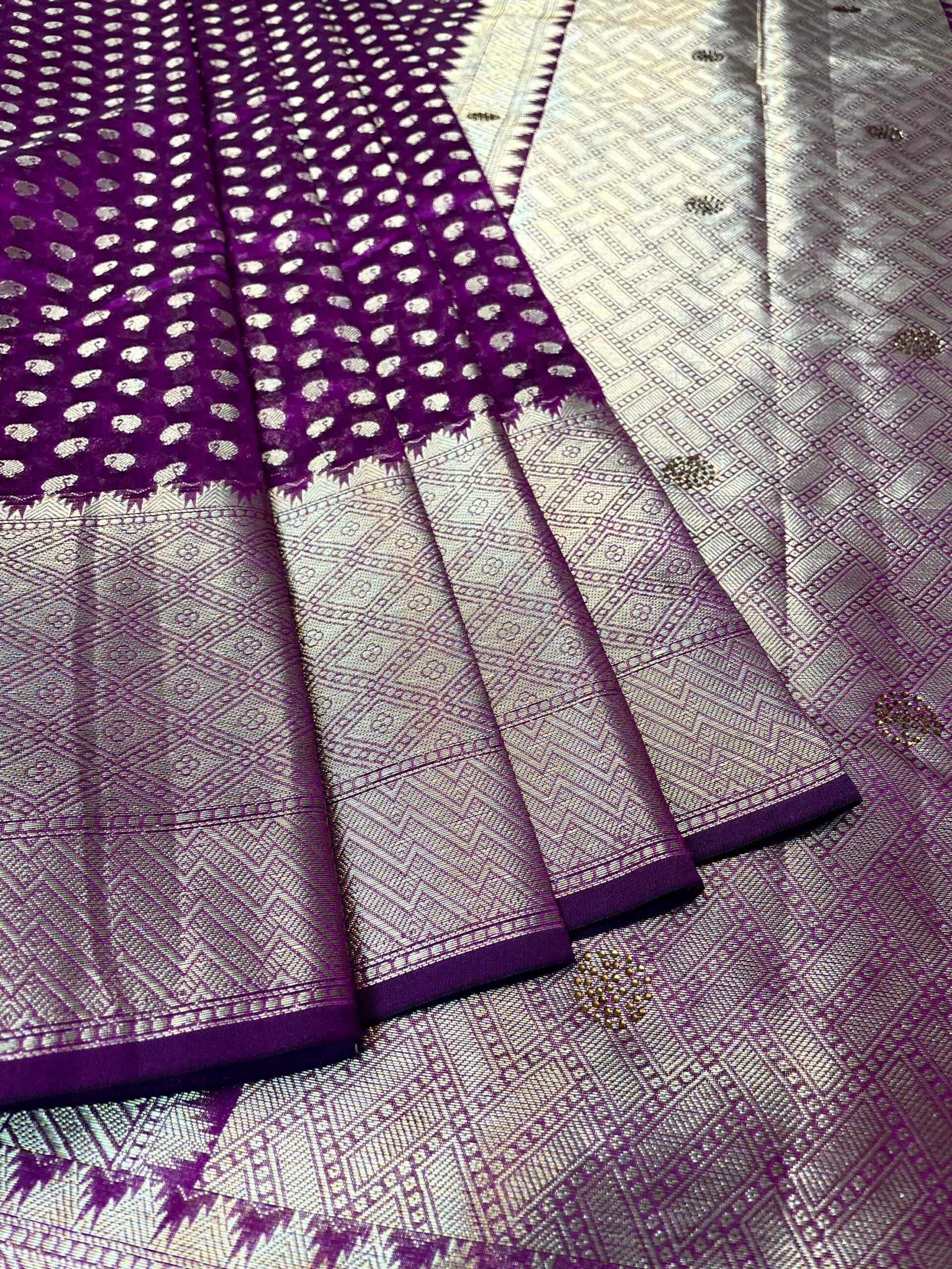 Purple Banaras Fancy with Zari Border Body Butta and Pallu Design