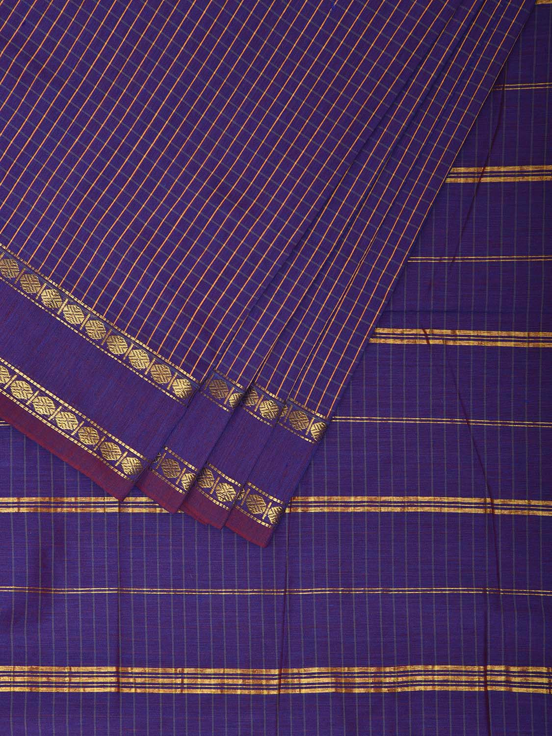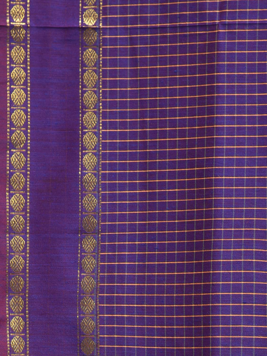 Purple Gadwal Cotton Viscose Saree with Checks and Border Design g0500