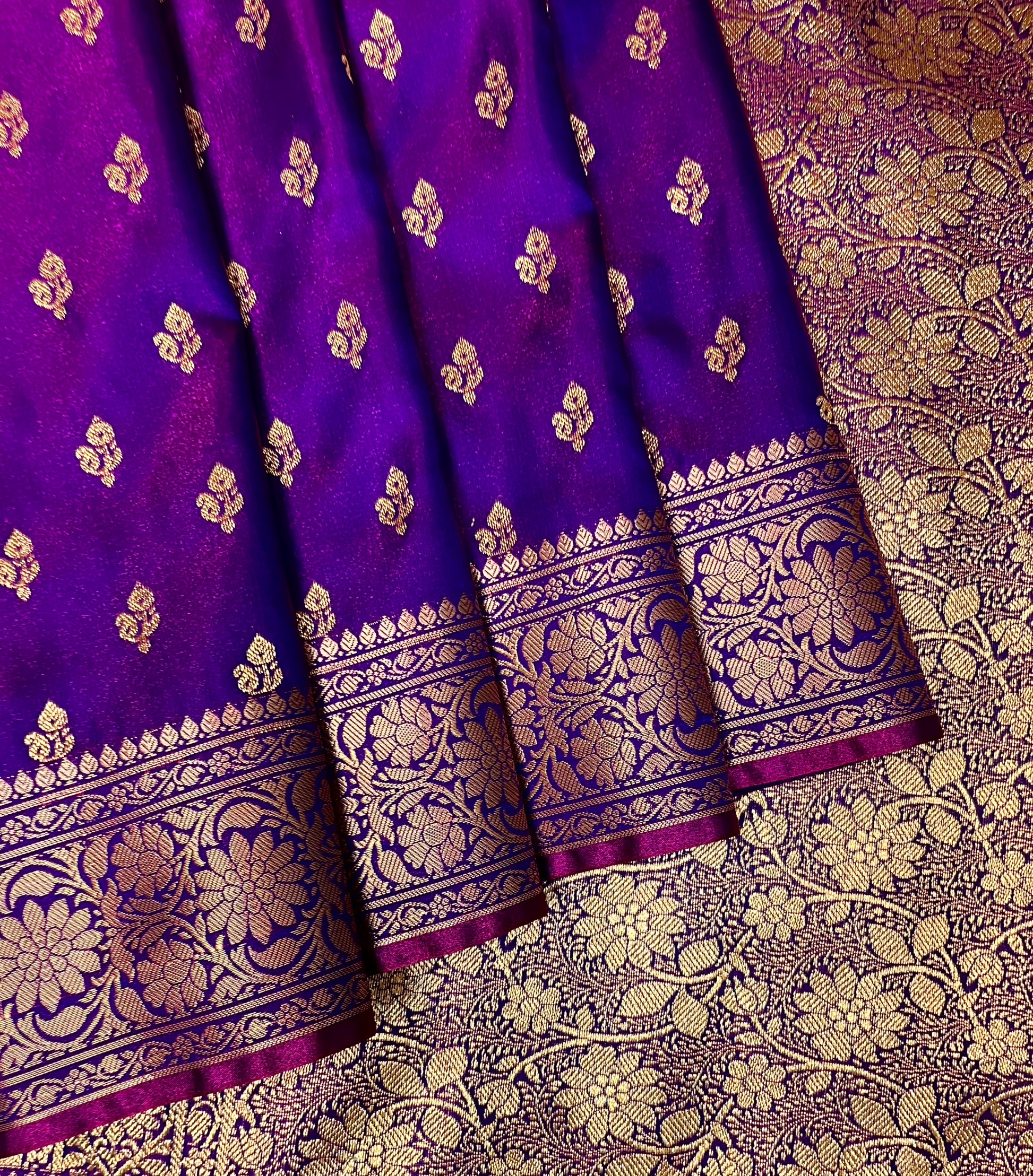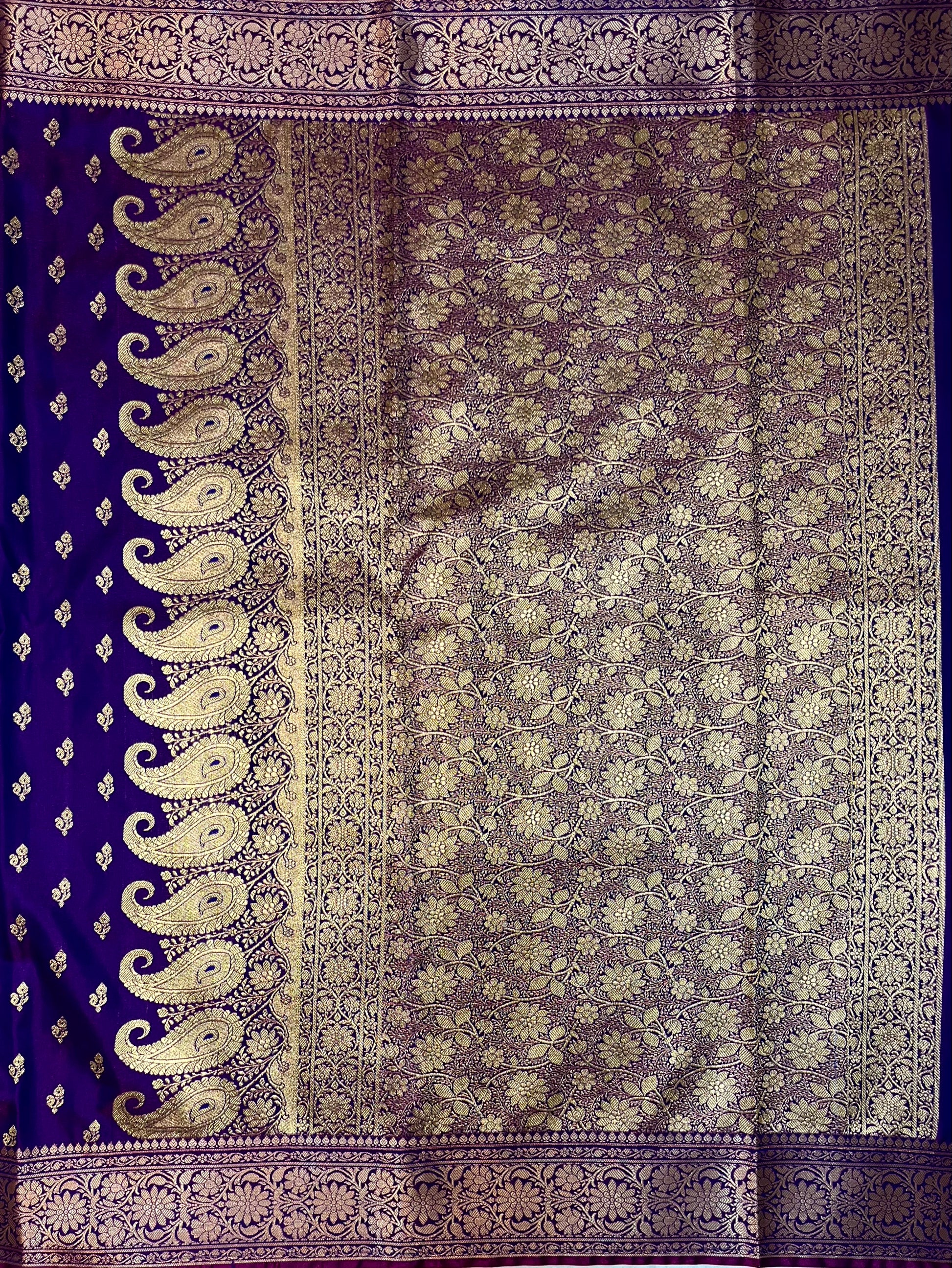 Purple Katan Banarasi Saree with gold Zari Floral Weaving And Grand Pallu B0652ds