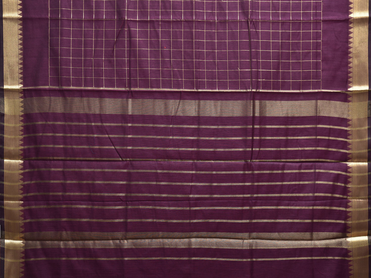 Purple Mangalgiri Cotton Handloom Saree with Checks Design mn0124