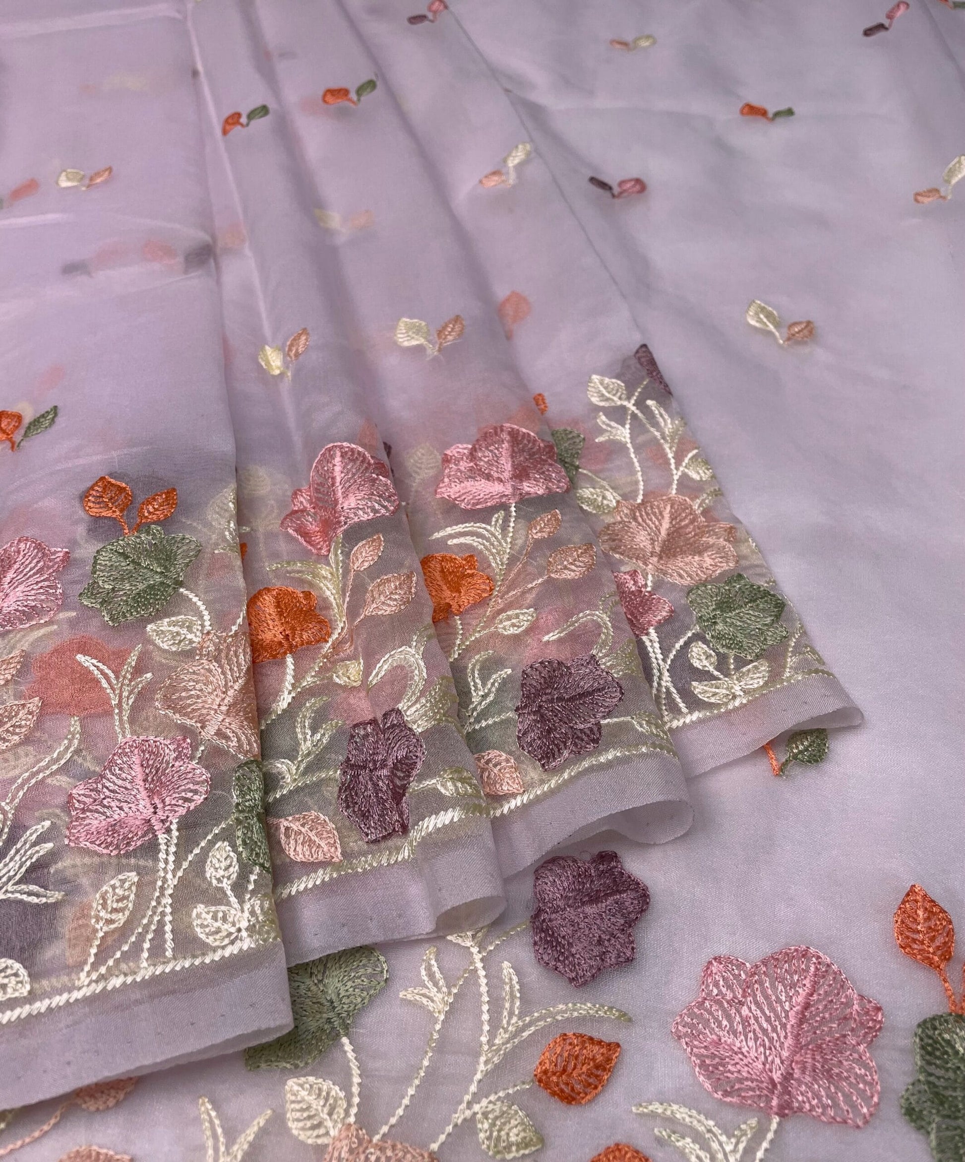 Purple Organza Saree Embroidery with Butta and Border Design b0333ds