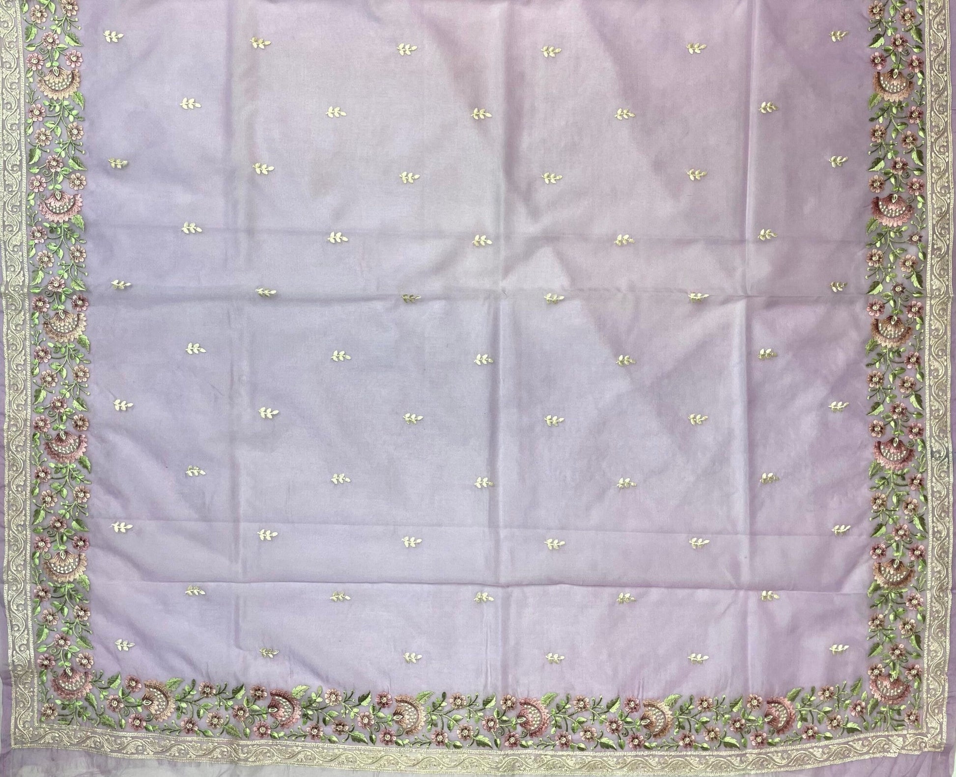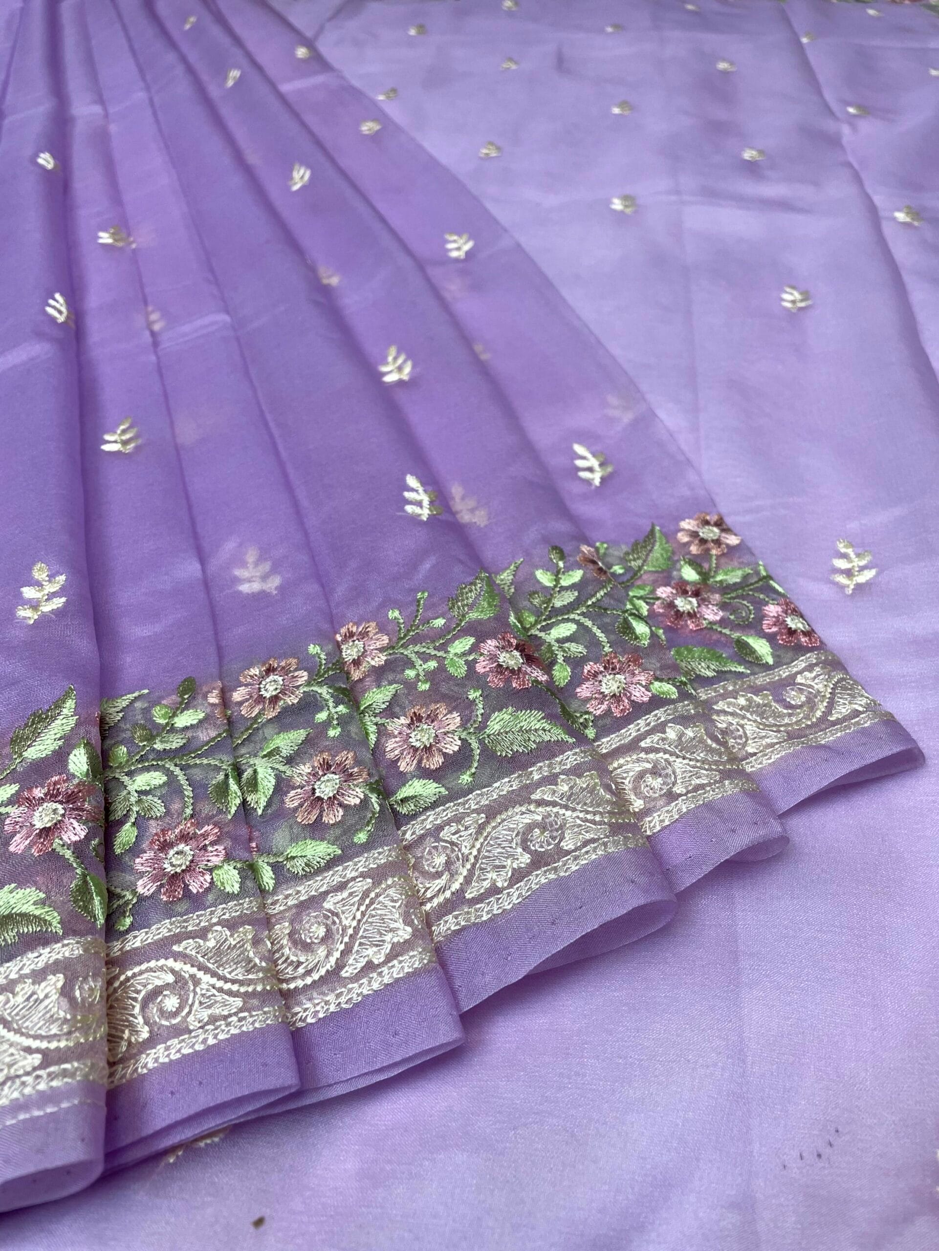 Purple Organza Saree Hand Embroidery with Butta and Border Design