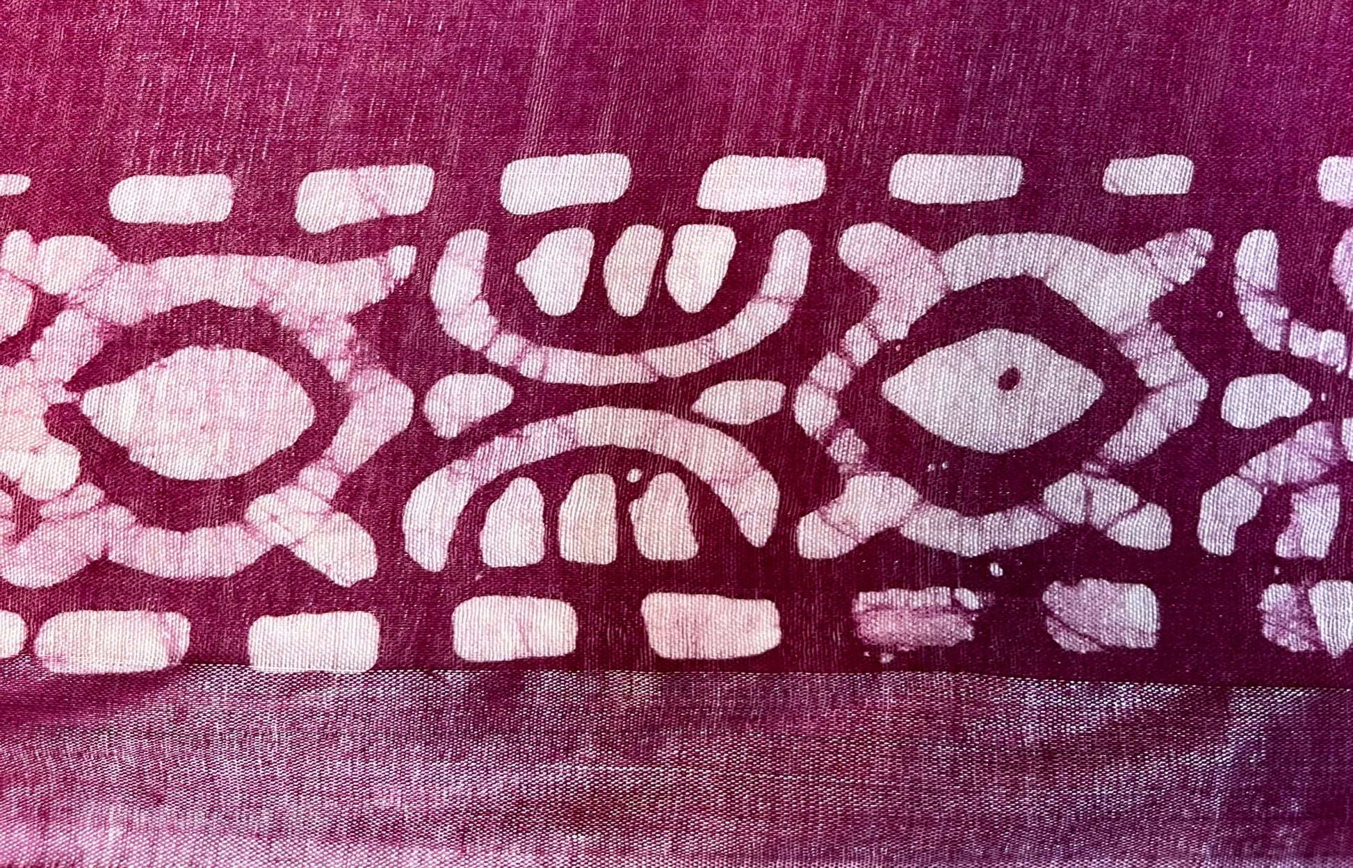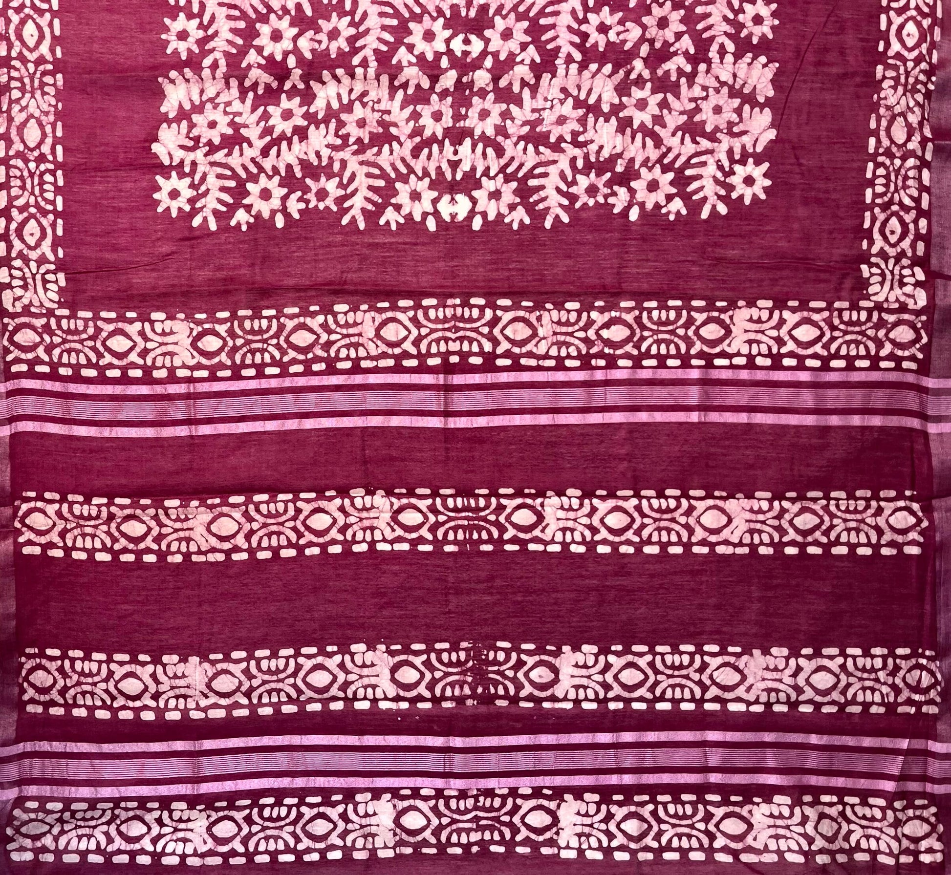 Rani pink Batik Printed Zari Border with Body and Pallu Design