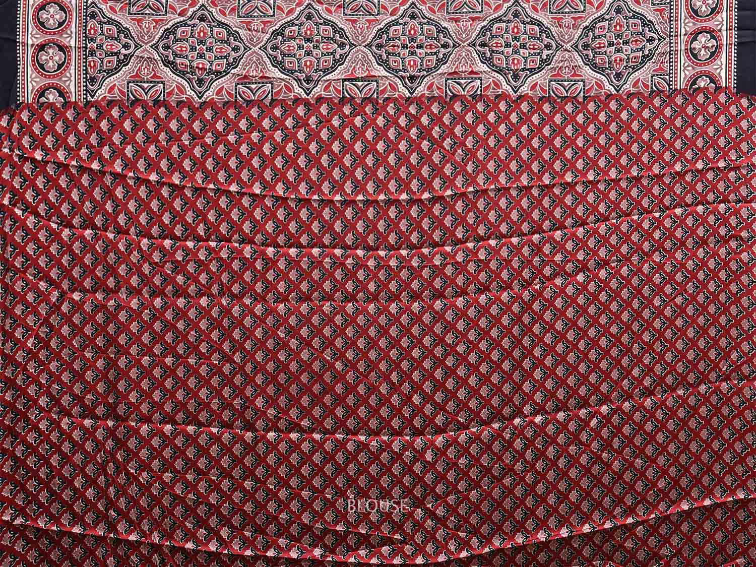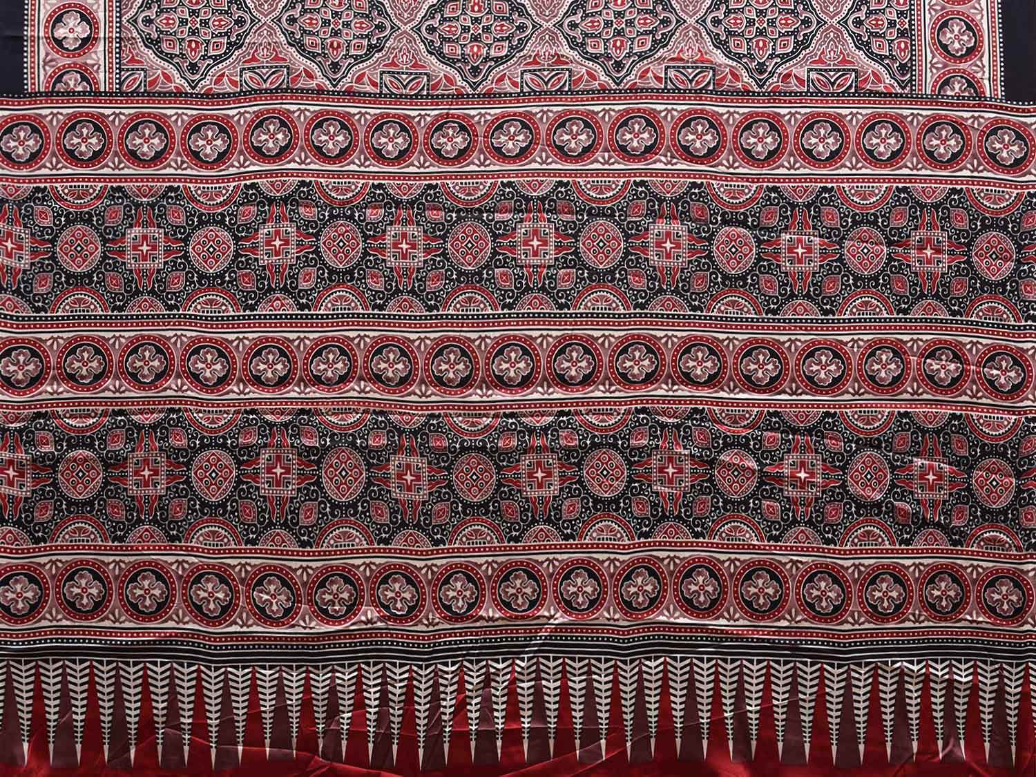 Red and Black Ajrak Digital Print Satin Silk Saree with Grill Design o0608