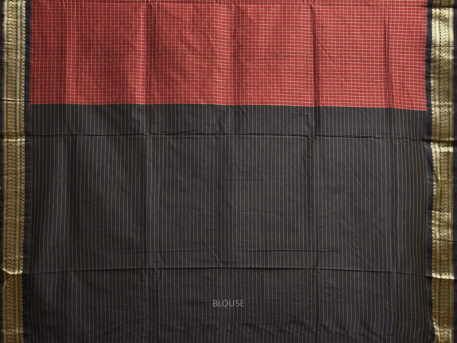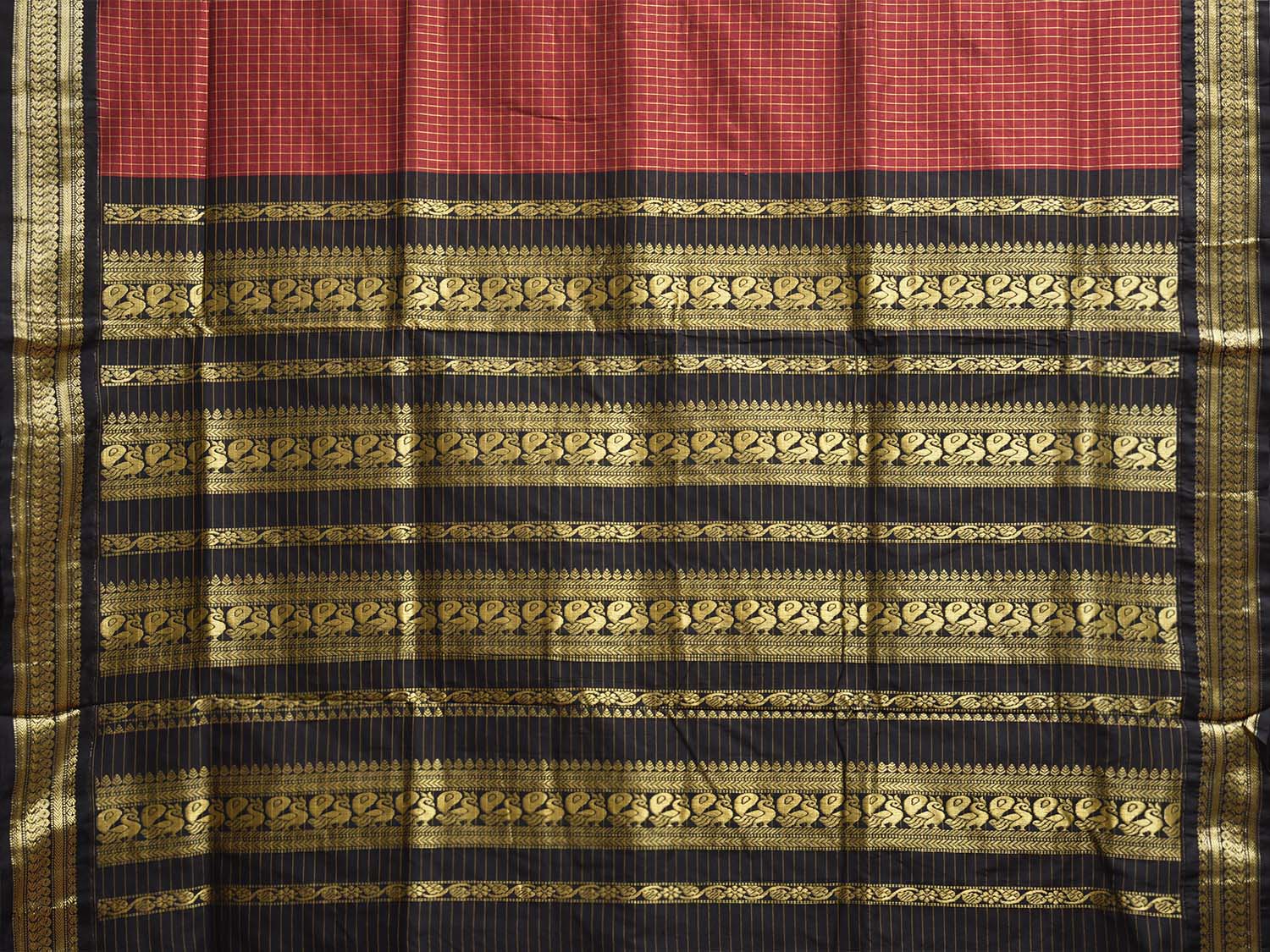 Red and Black Gadwal Cotton Viscose Saree with Checks and Pallu Design g0548