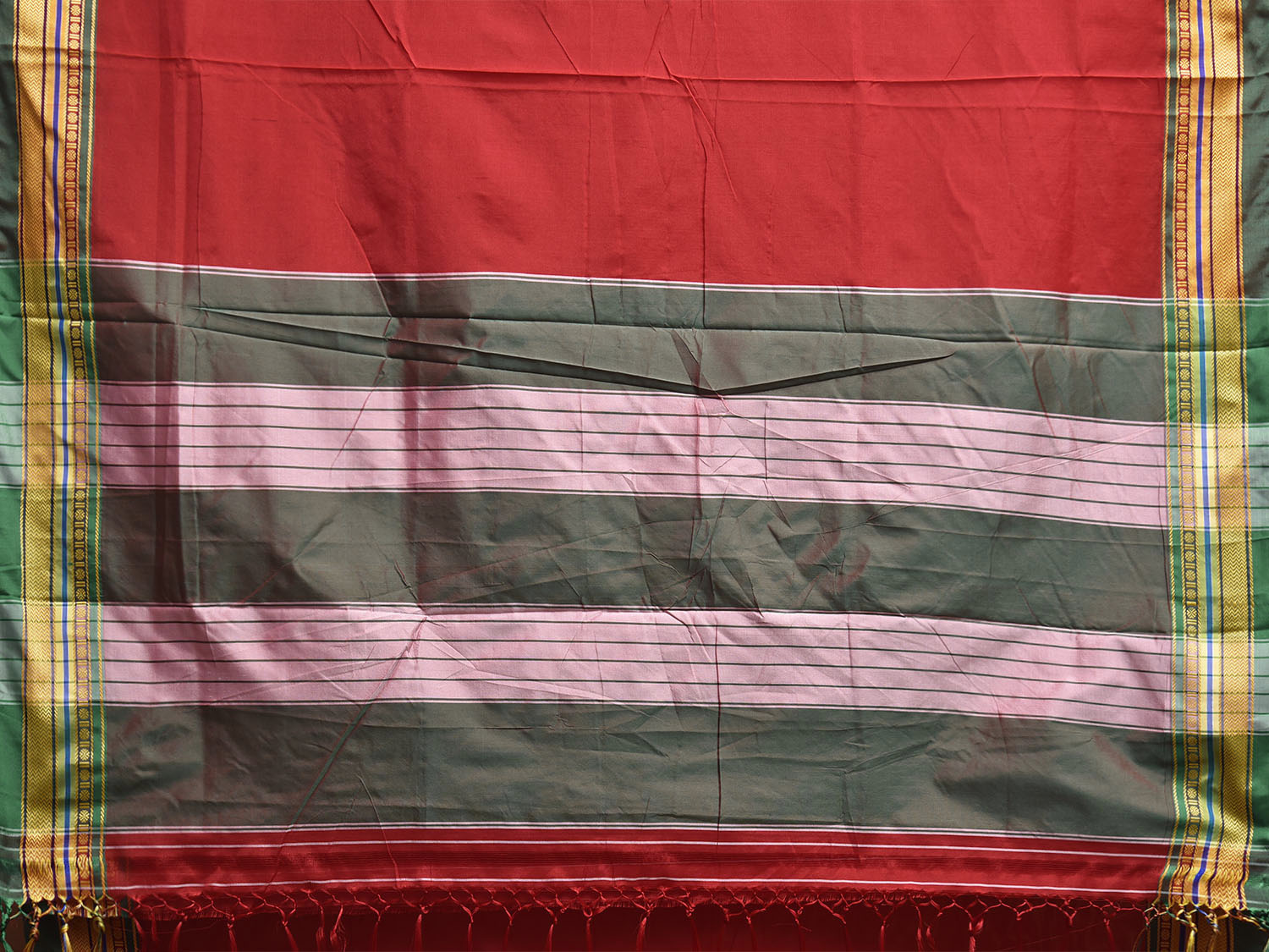 Red and Green ilkal Cotton Plain Saree with Strips Pallu Design No Blouse il0053