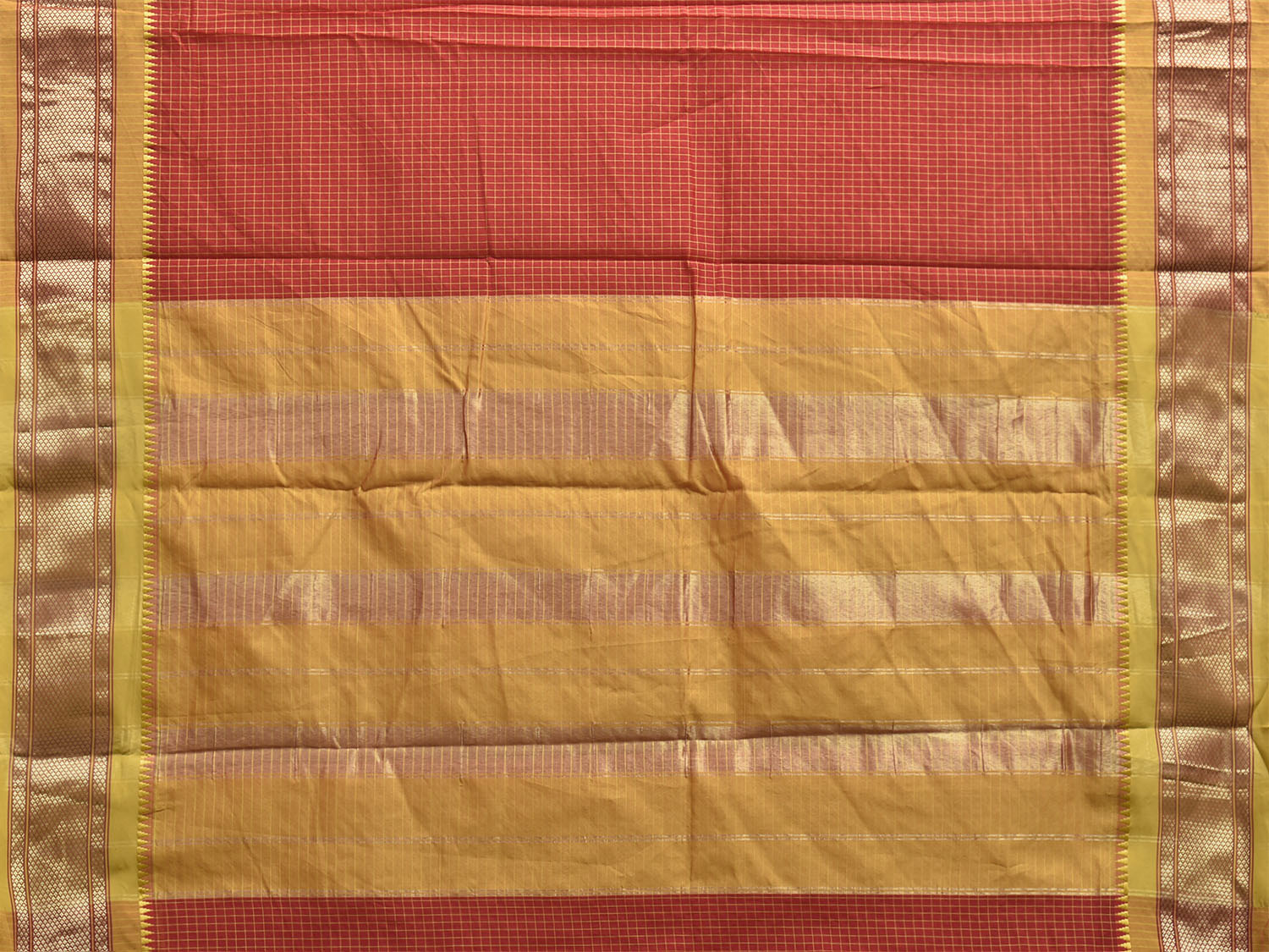 Red and Mustard Bamboo Cotton Saree with Checks Design No Blouse bc1049
