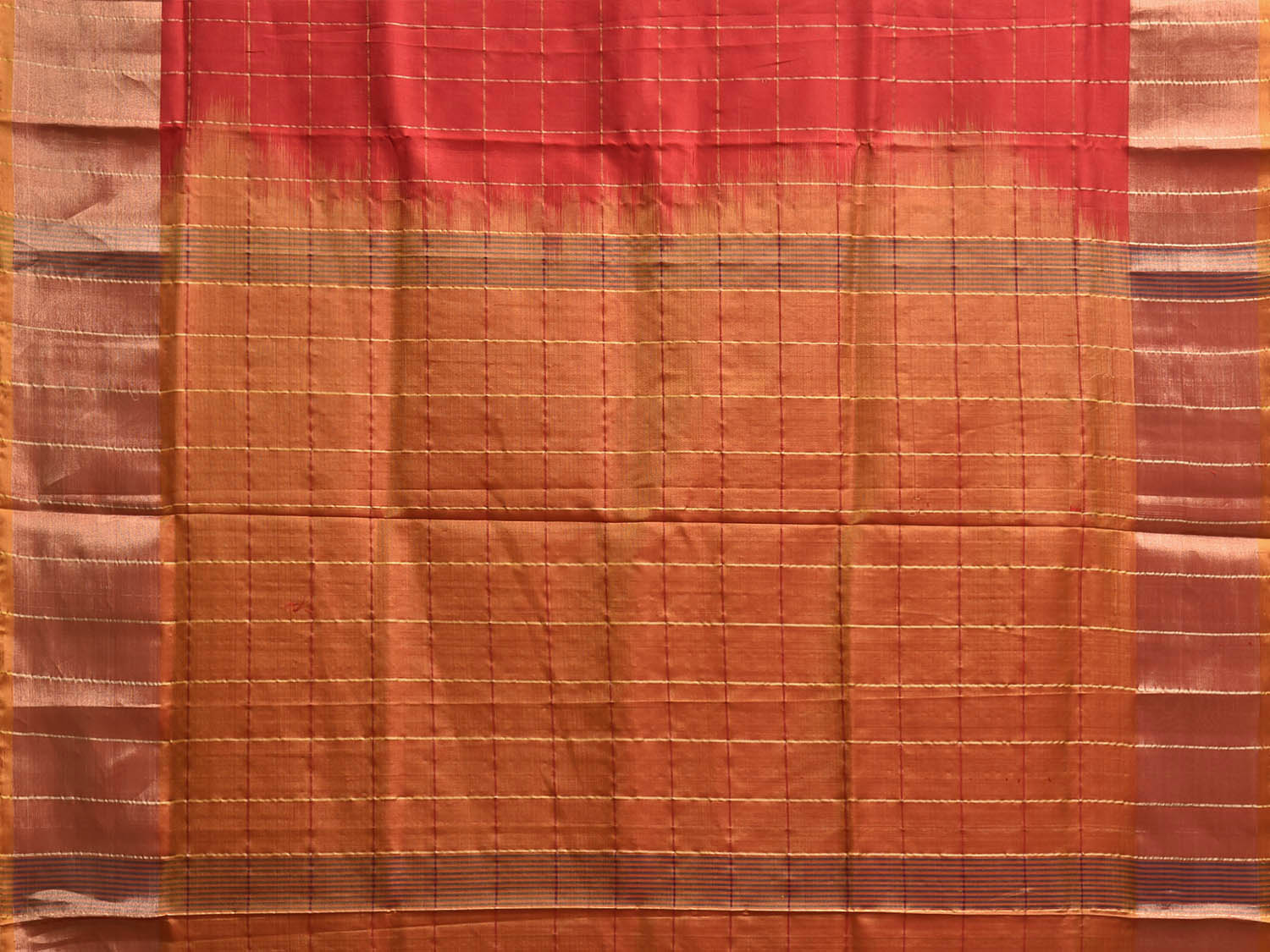 Red and Mustard Uppada Silk Handloom Saree with Big Checks Design u2443