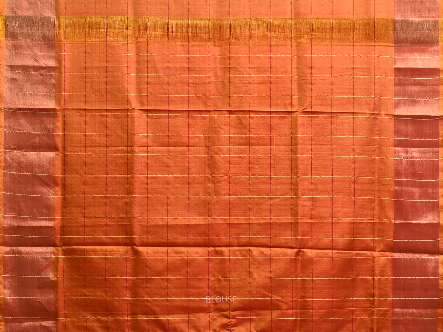 Red and Mustard Uppada Silk Handloom Saree with Big Checks Design. Uppada sarees are known for light weight sarees with jamdani weaving technique. With so many traditional designs it is considered for the very special occasion wear. We advice dry clean for fabric care.