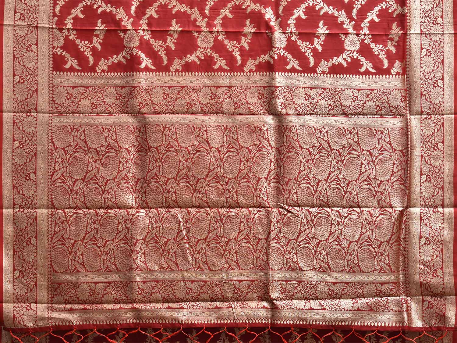 Red Banaras Katan Viscose Saree with All Over Floral and Pallu-Border Design b0317