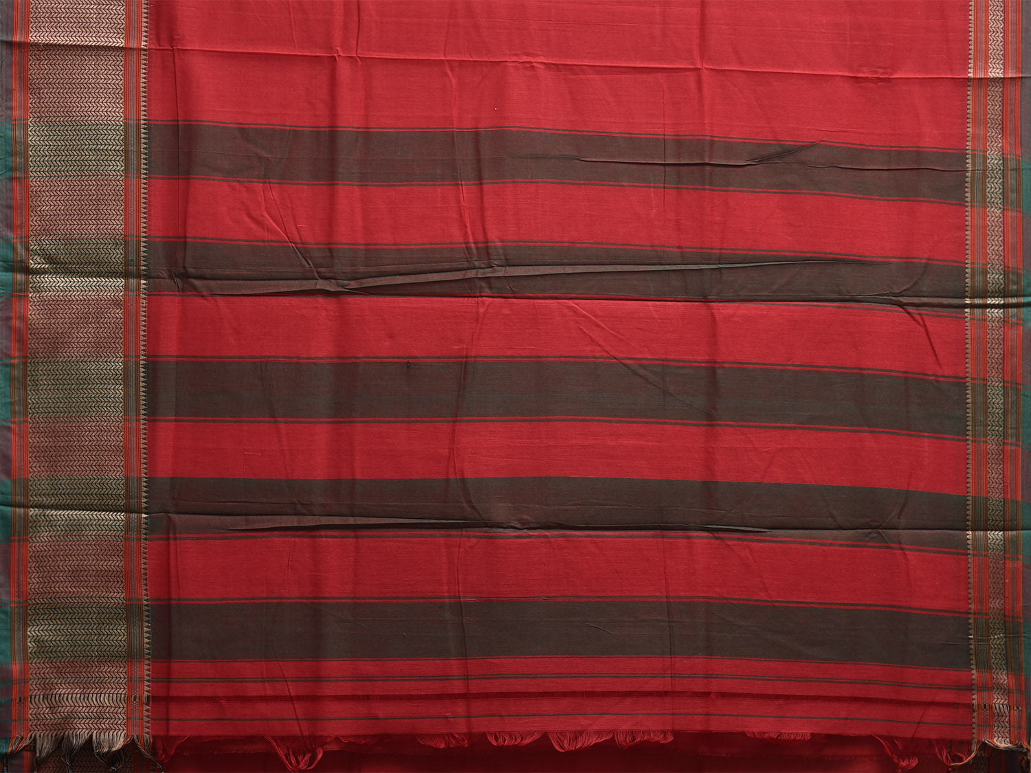 Red Kanchipuram Cotton Plain Saree with Strips Pallu Design No Blouse k0873