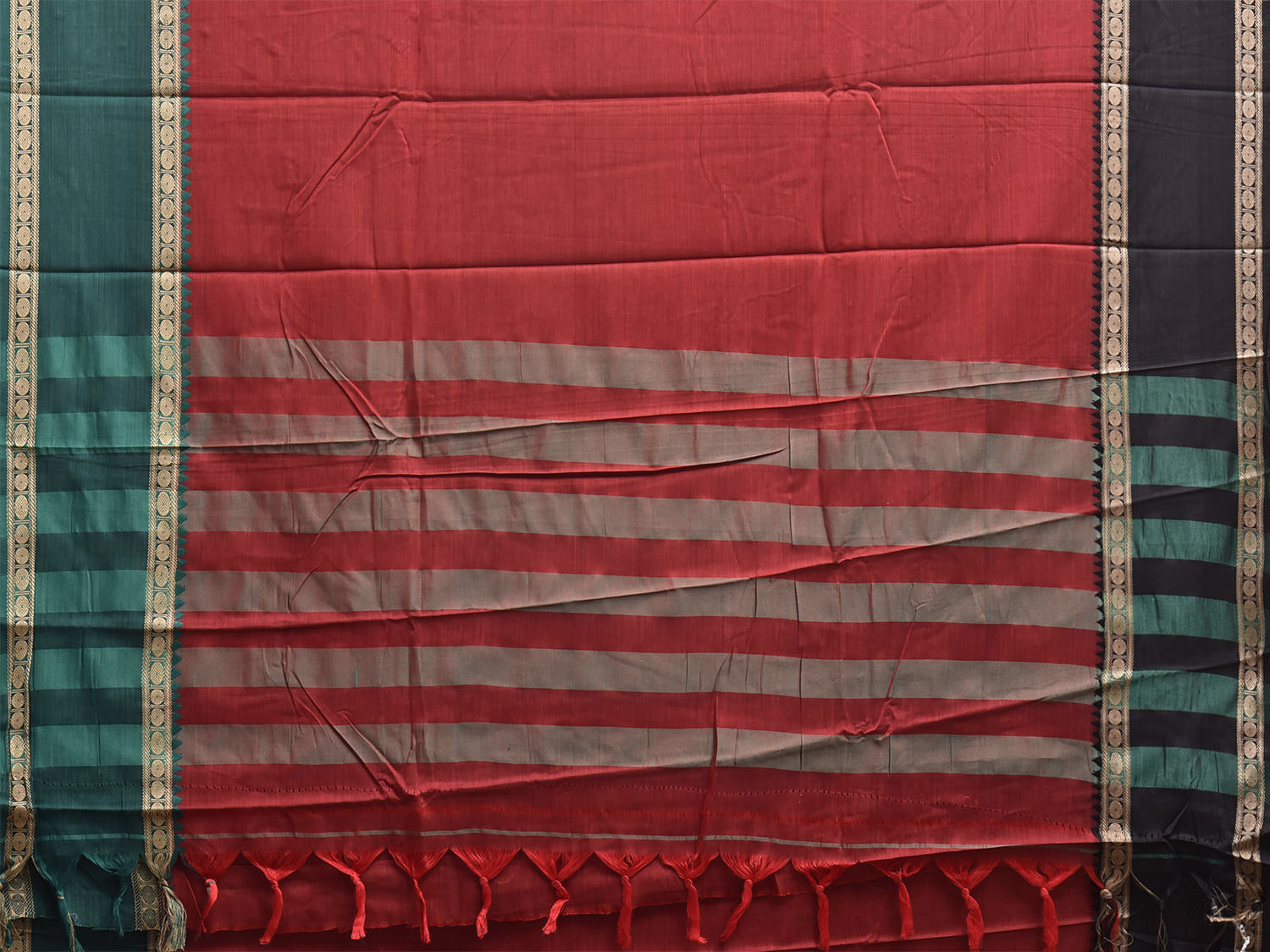 Red Kanchipuram Cotton Saree with Ganga-Jamuna Border Design No Blouse k1016