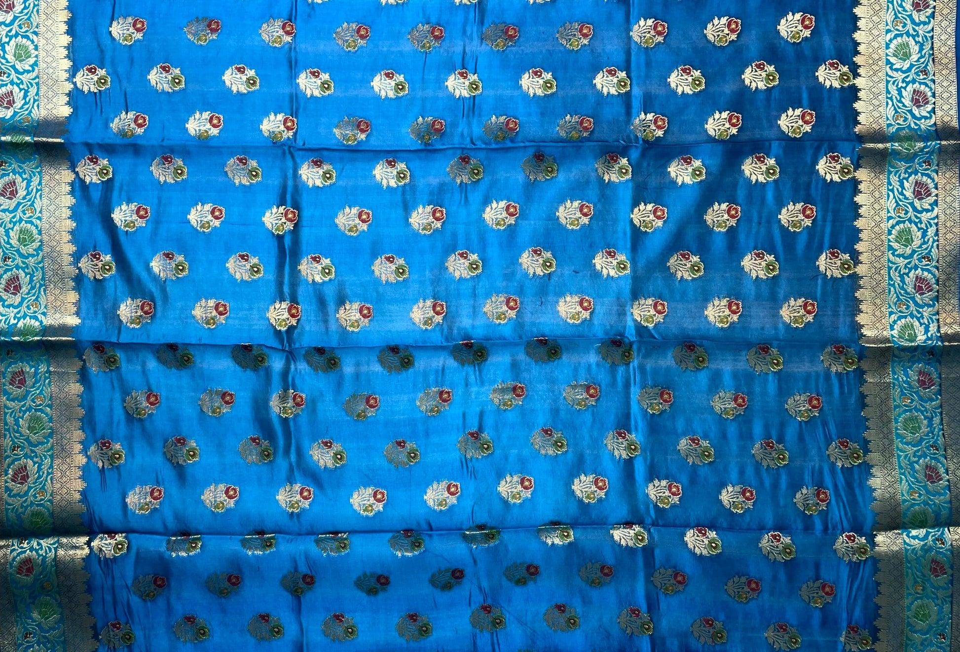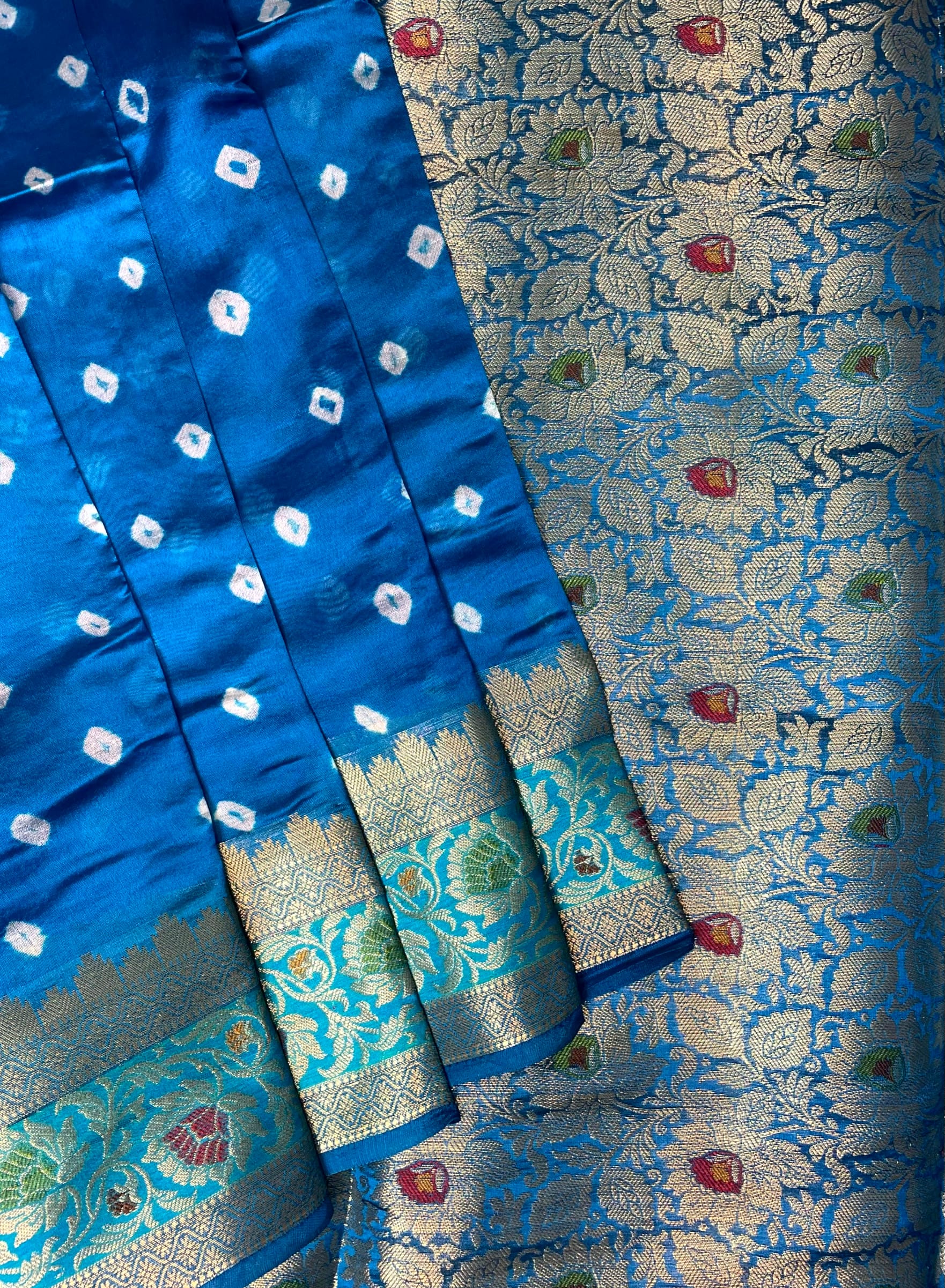 Royal Blue Banaras Bandhani Silk Saree with Border and Pallu Design