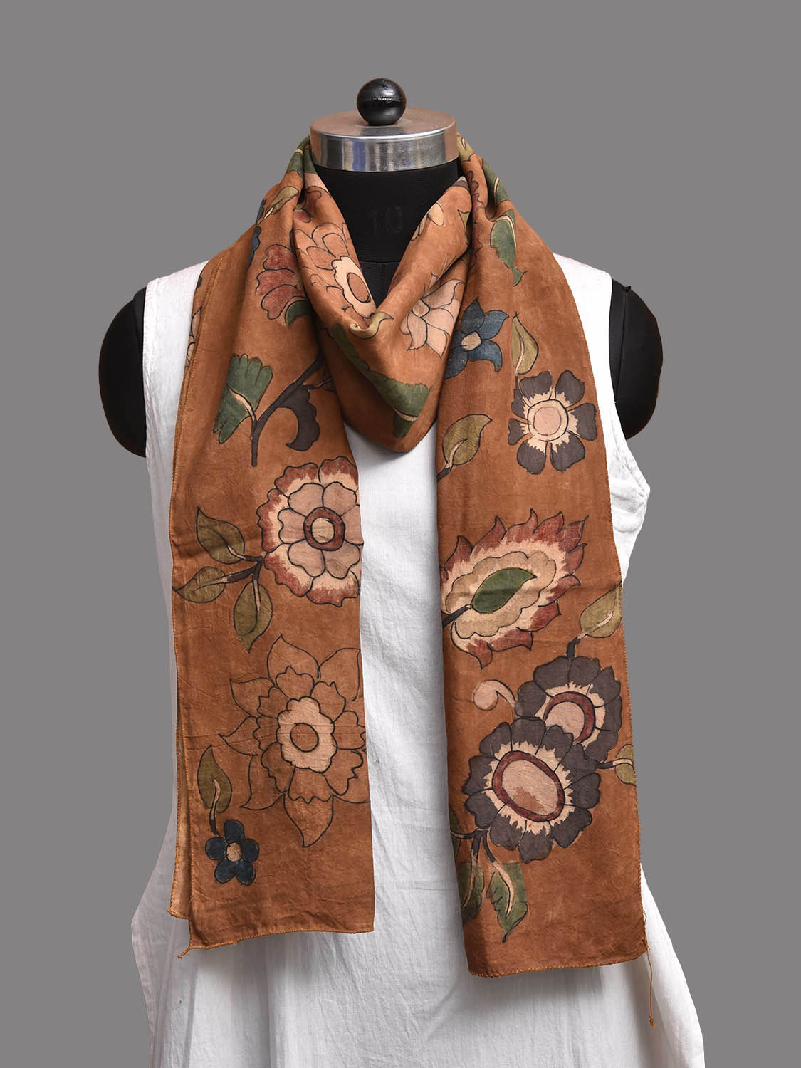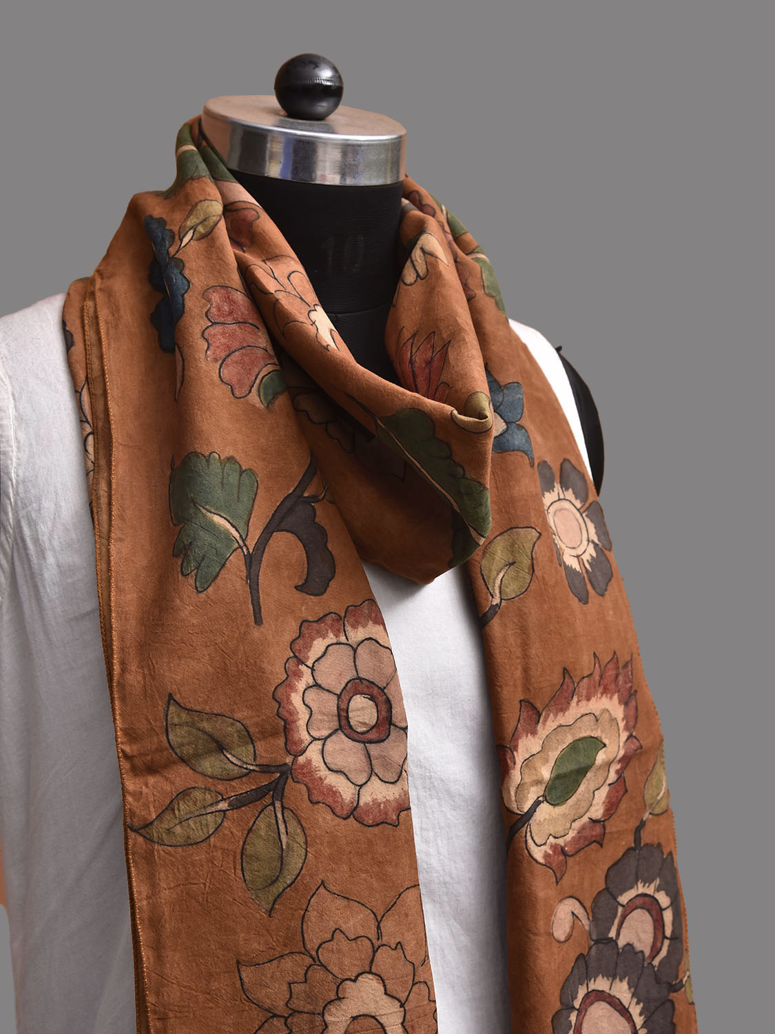 Rust Kalamkari Hand Painted Sico Stole with Floral Design ds3927