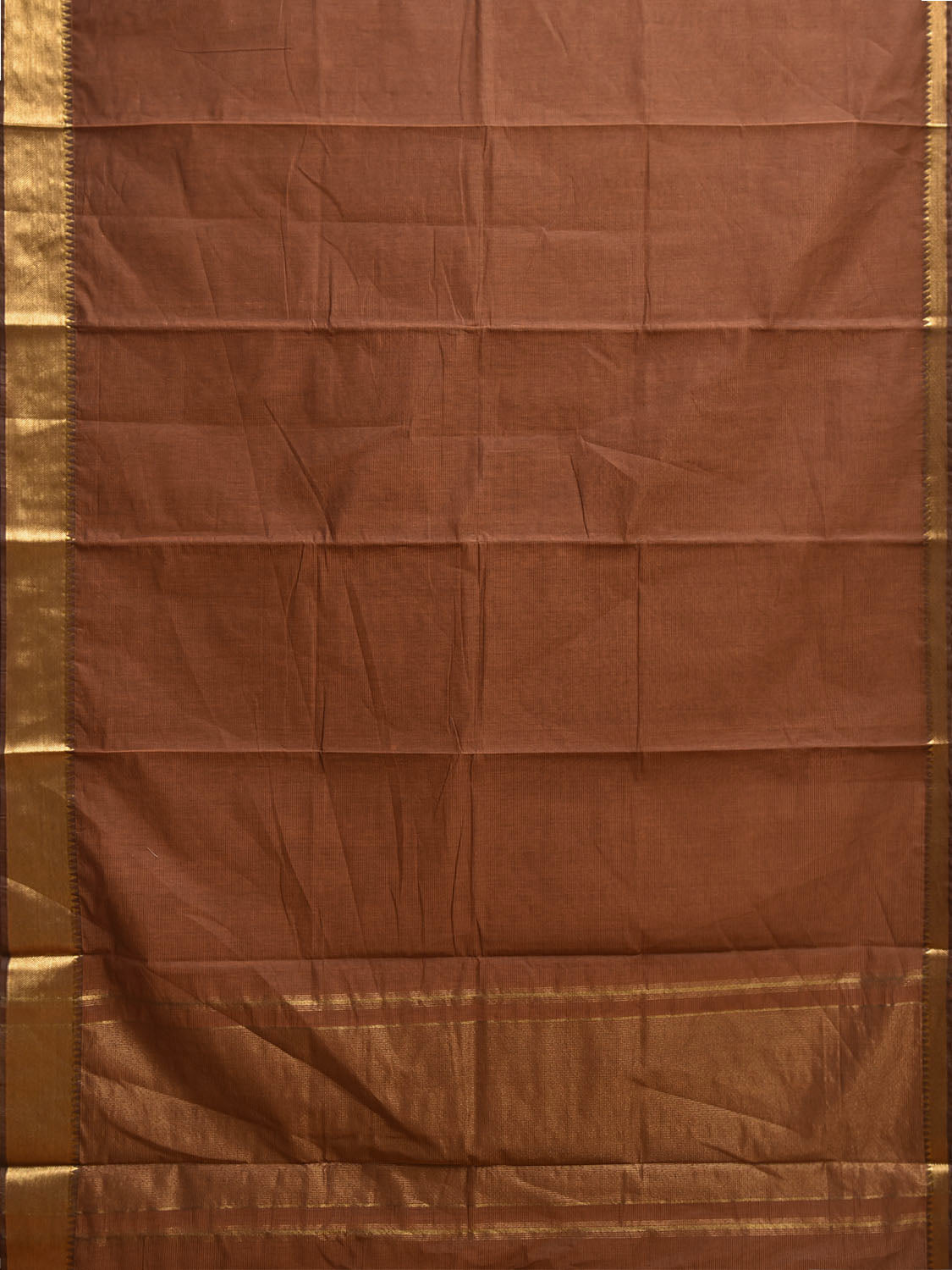 Rust Mangalgiri Cotton Handloom Saree with Strips and Small Temple Border Design No Blouse mn0121