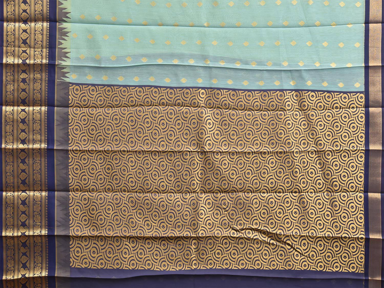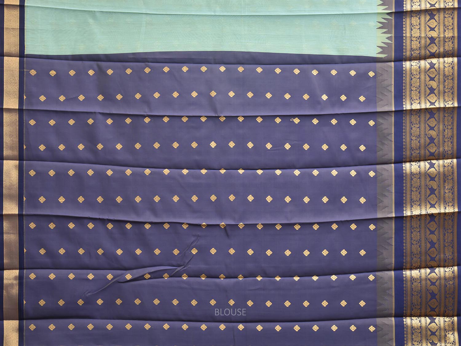Sea Blue and Dark Blue Gadwal Cotton Viscose Saree with Temple Border and Pallu Design g0610