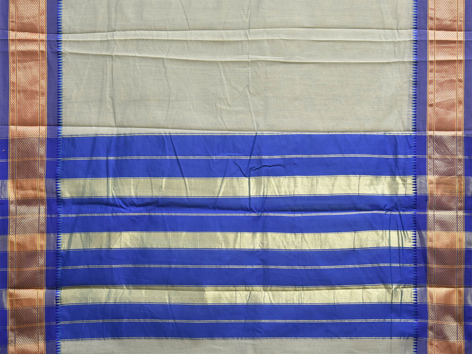 Sea Green and Blue Bamboo Cotton Plain Saree with Contrast Pallu Design No Blouse bc1040