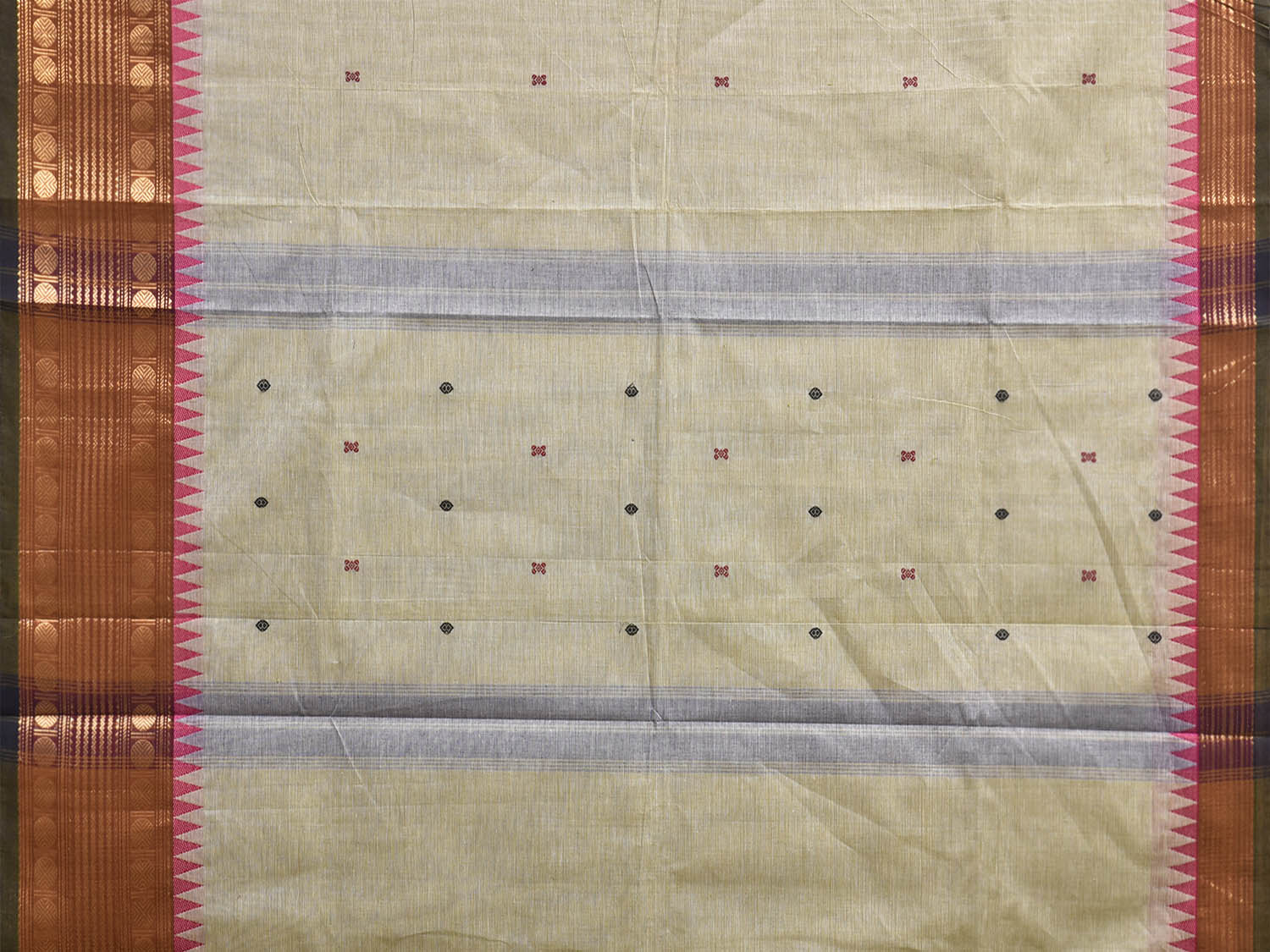 Sea Green Kanchipuram Cotton Saree with Strips Pallu and Border Design. Traditional Simple South Indian Attire Saree for any Casual Occasions. As it’s a cotton saree we advice gentle handwash separately for fabric care. This saree has no blouse.