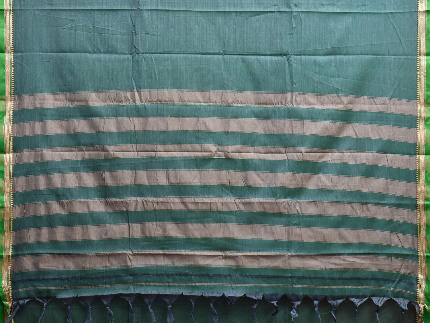 Sea Green Narayanpet Cotton Plain Saree with Strips Pallu Design No Blouse