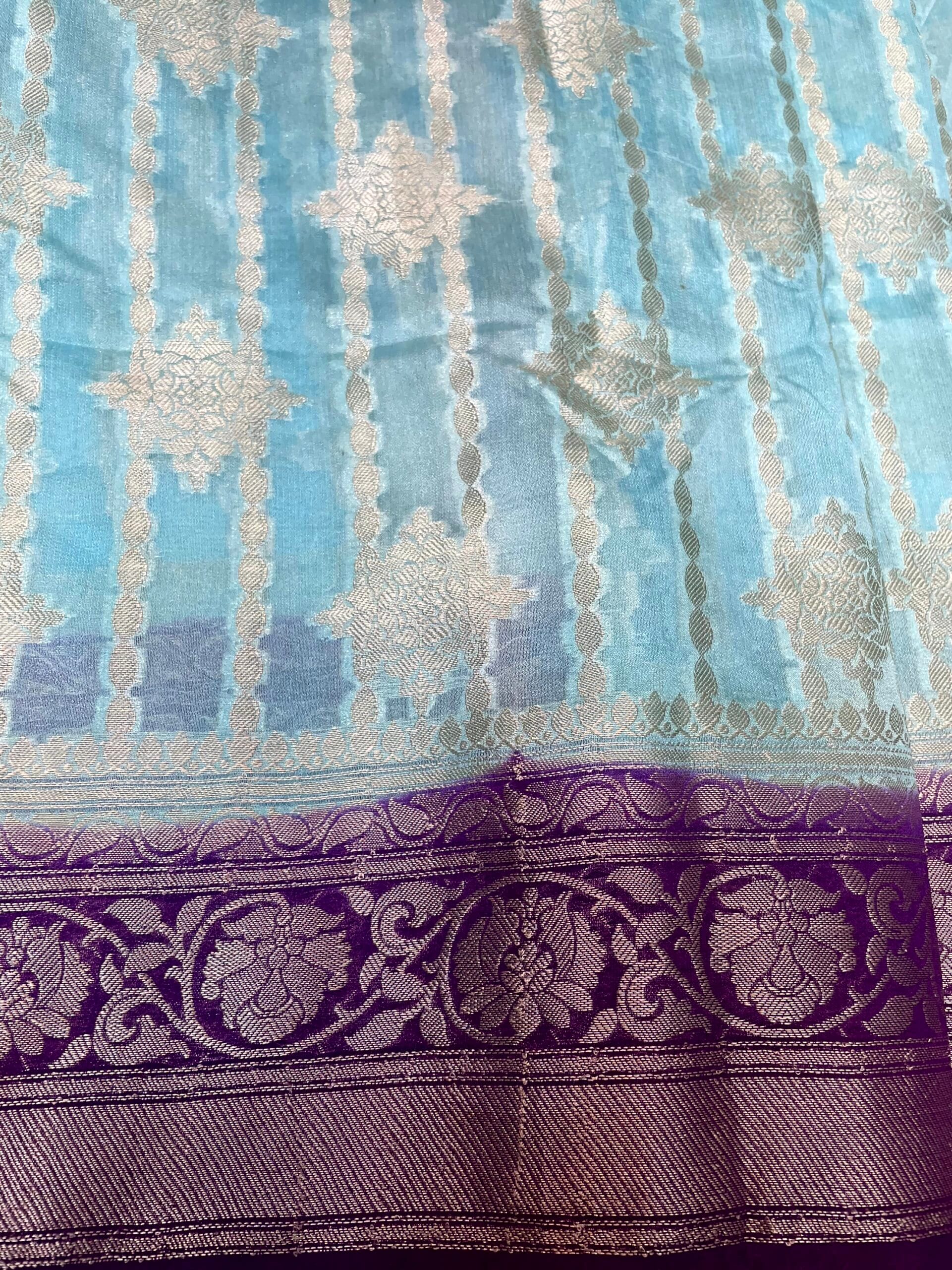 Sky Blue and Magenta Black Banaras Georgette with Body Border and Pallu Design