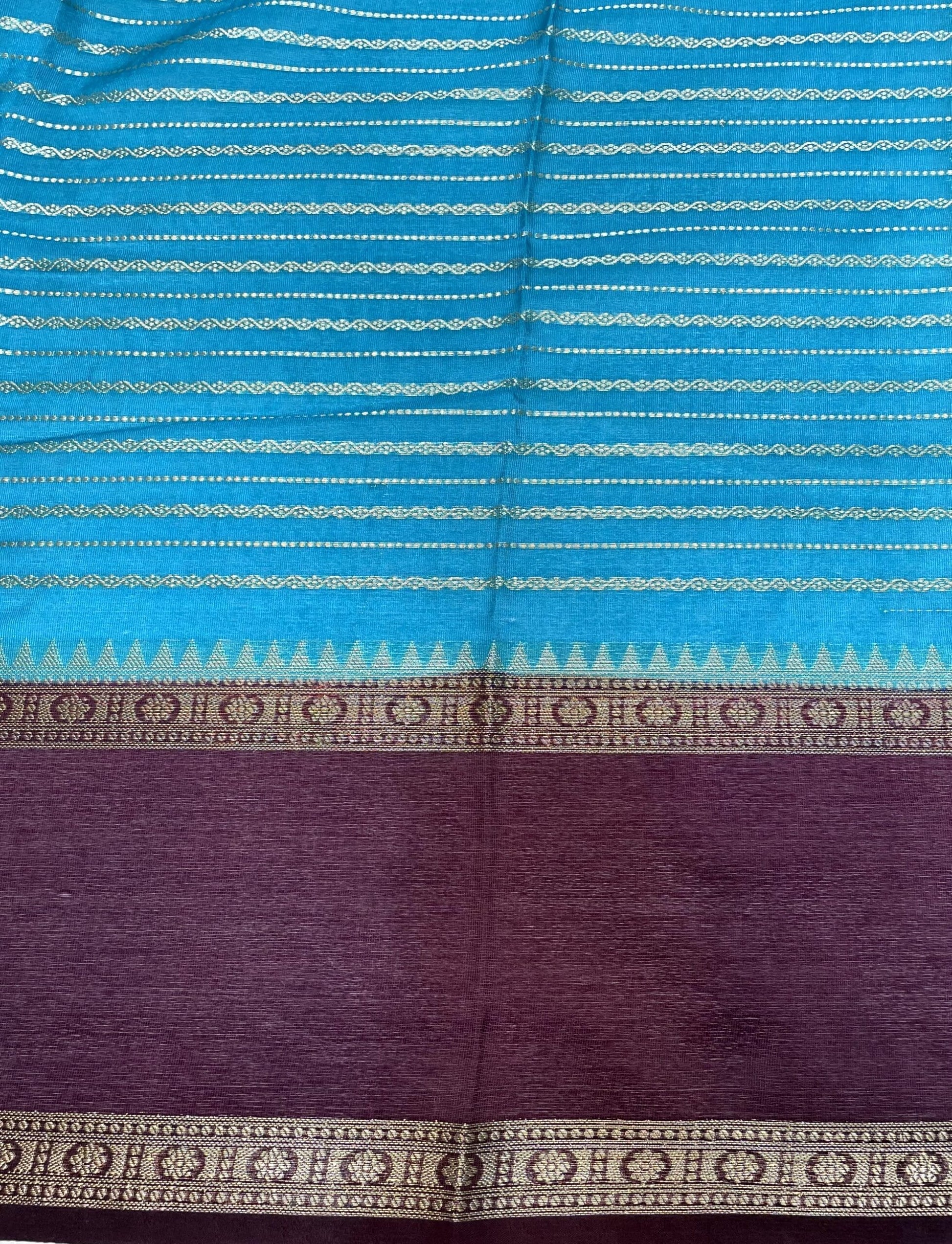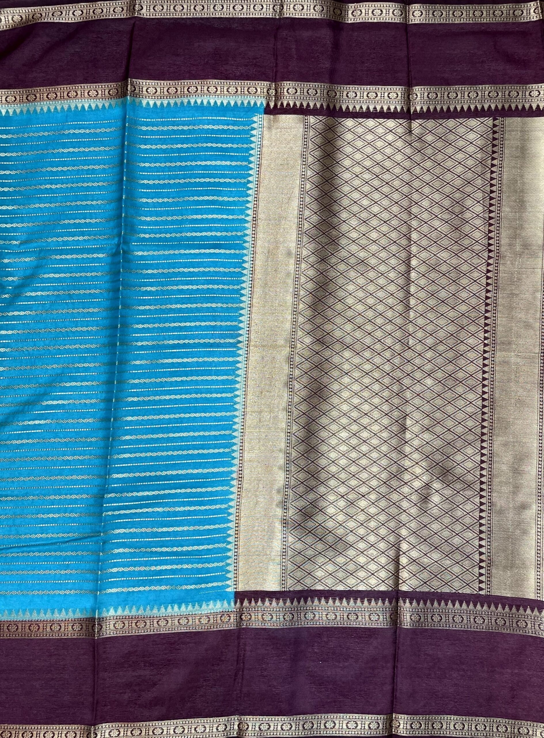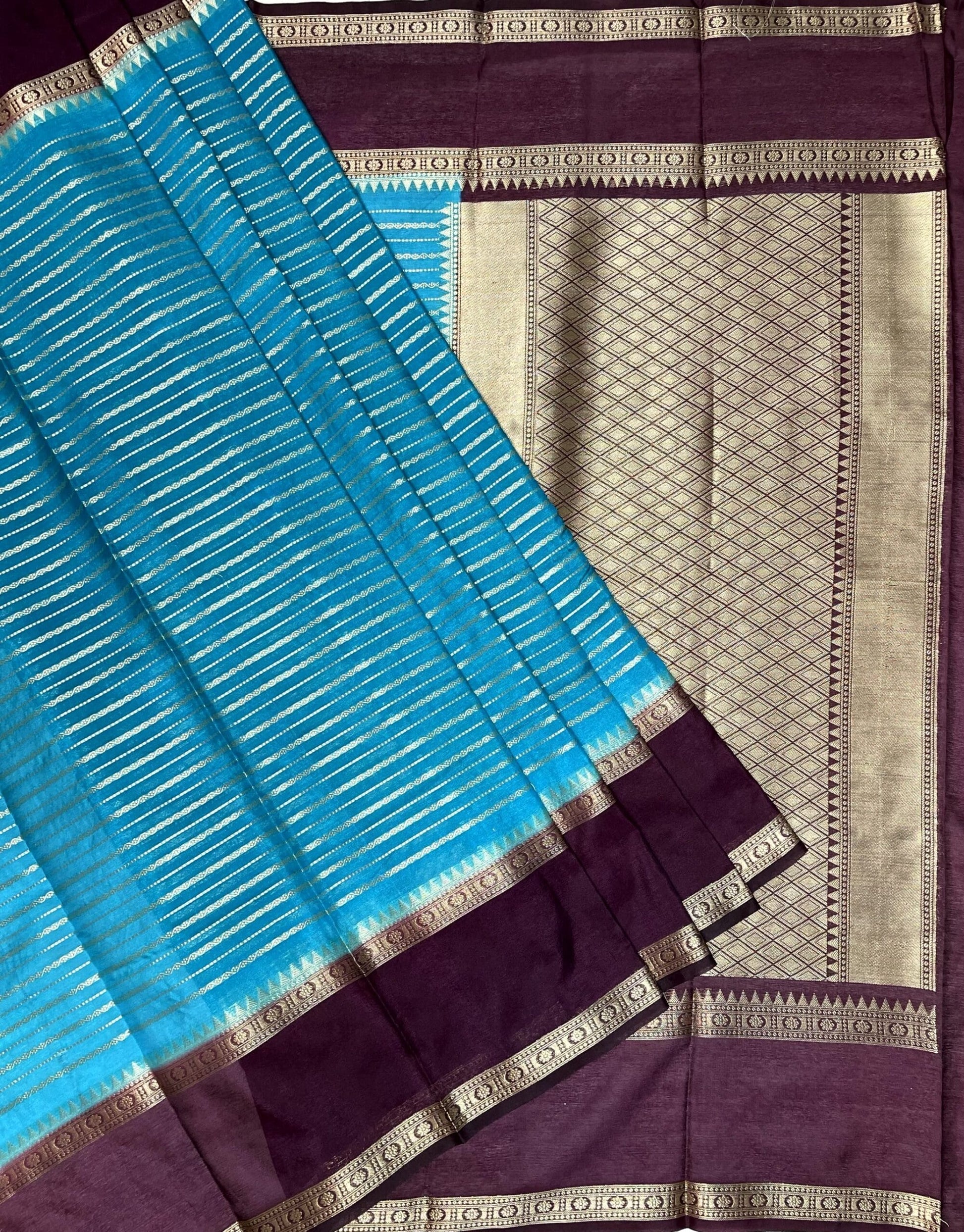 Sky Blue and Magenta Georgette Silk with Zari Stripes Design
