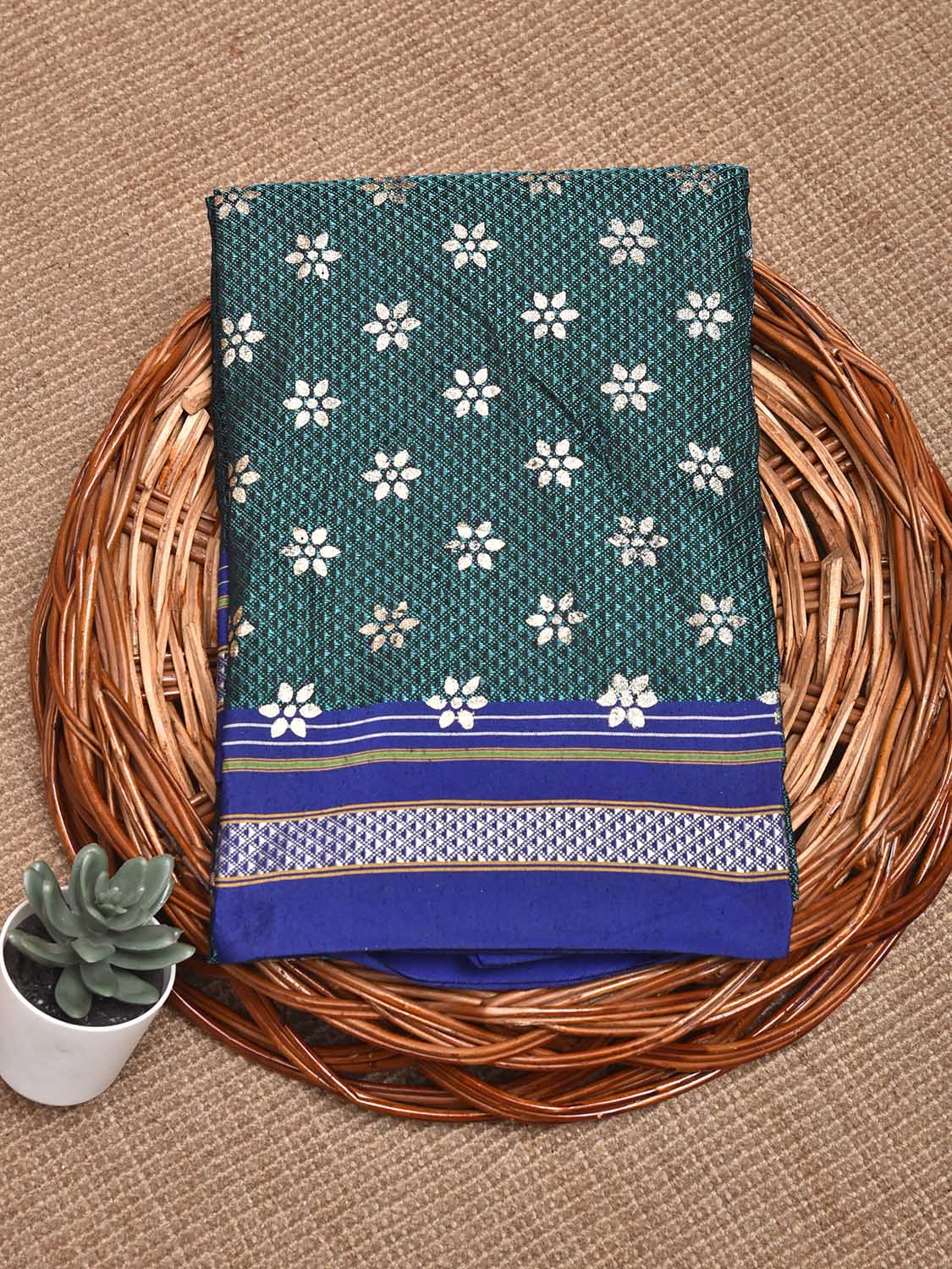 Teal and Blue Jacquard Viscose Blouse with Floral Print Design Length 1mt Width 31 Inches. Beautiful Pattern Blouse Fabric and Easy to Match to Any Suitable Saree. We Advise Gentle Handwash for Fabric Care.