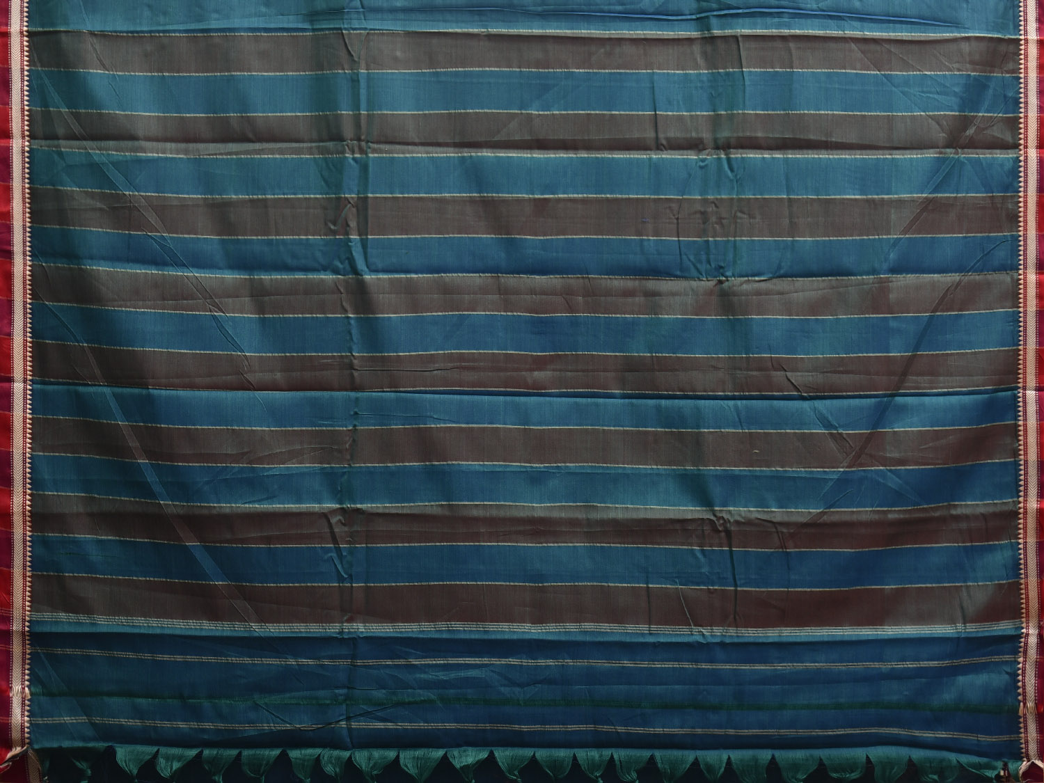 Teal Narayanpet Cotton Plain Saree with Strips Pallu Design No Blouse.