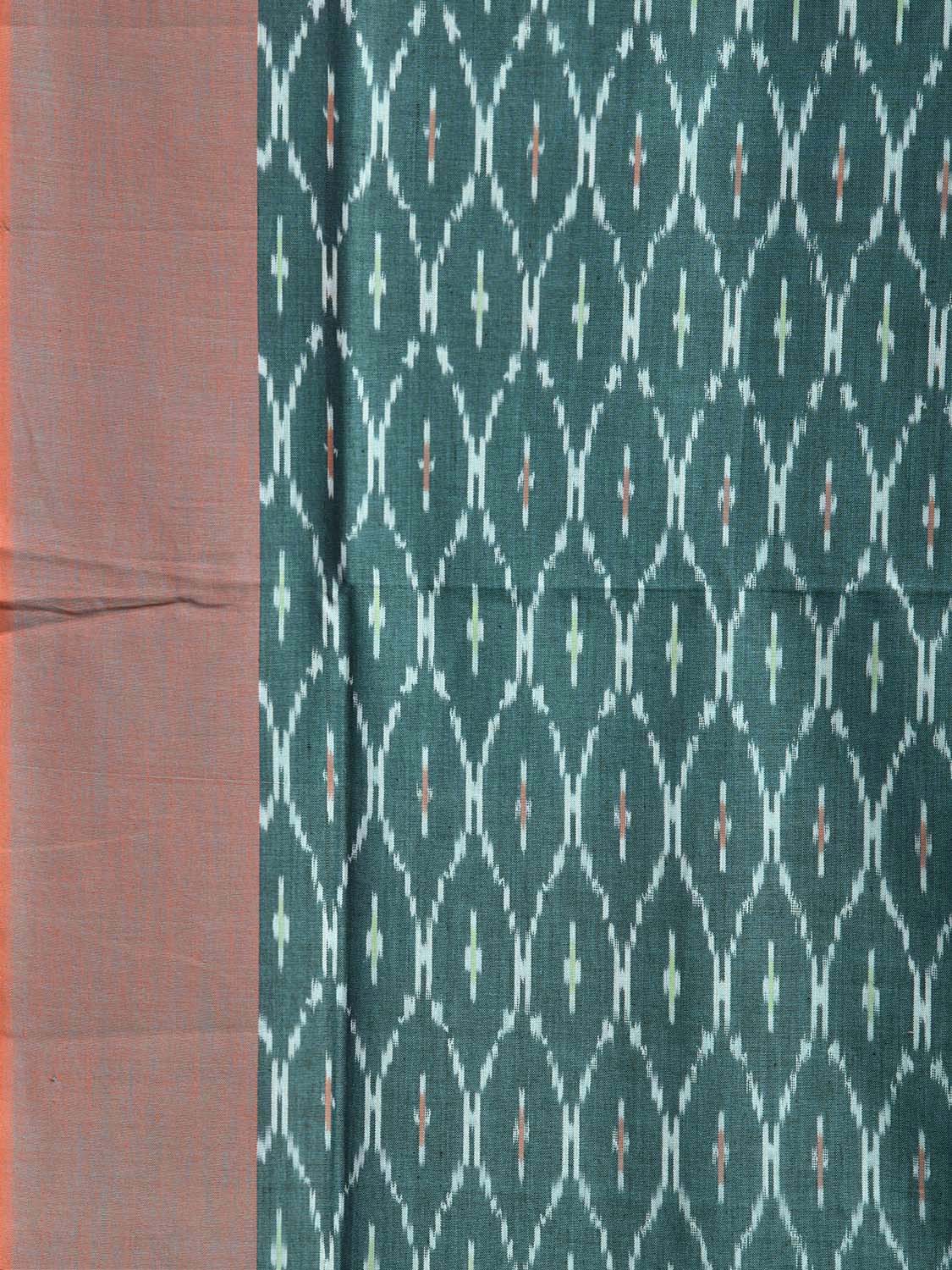 Teal Pochampally Ikat Cotton Saree with Grill Design No Blouse i0992
