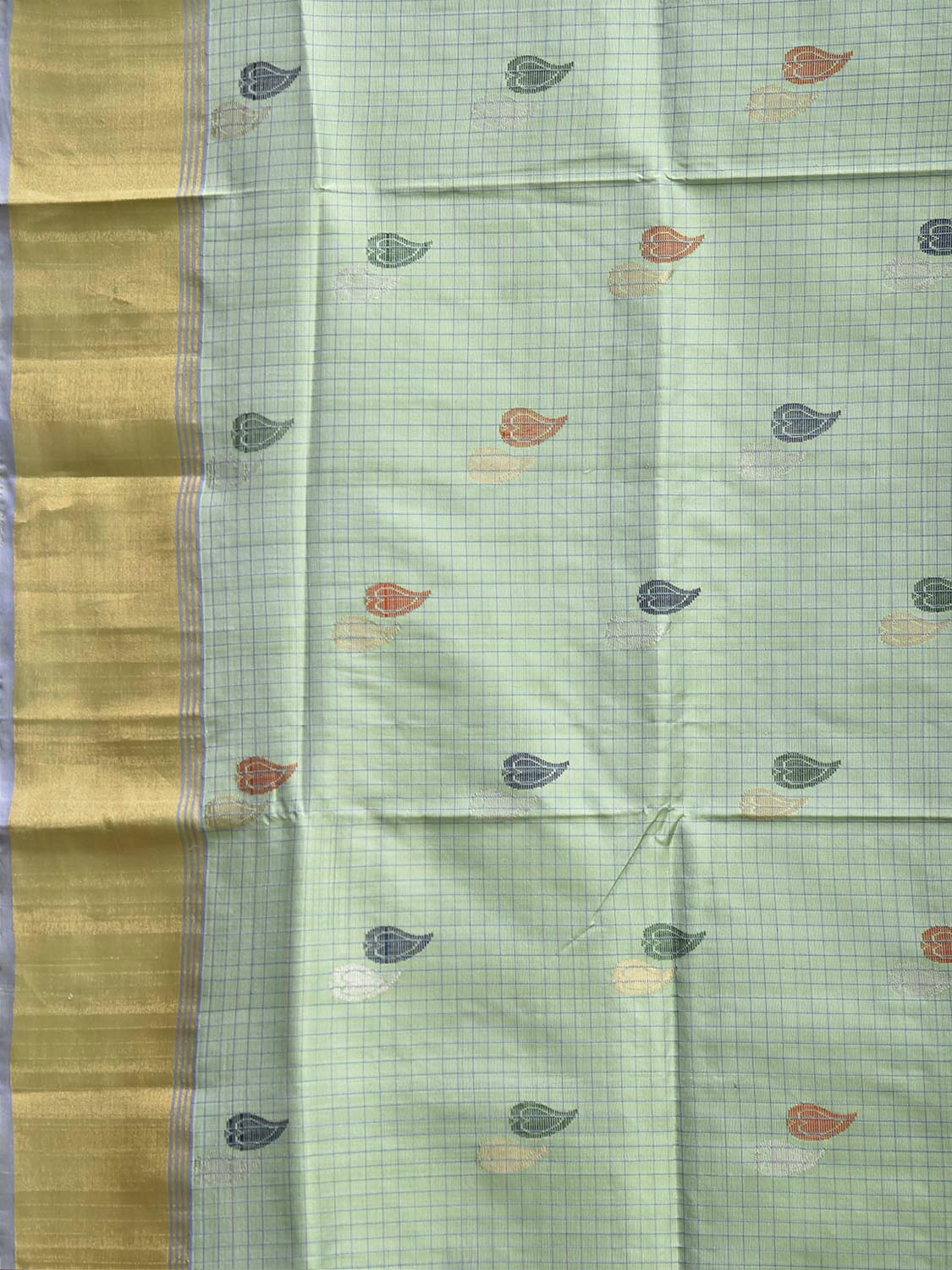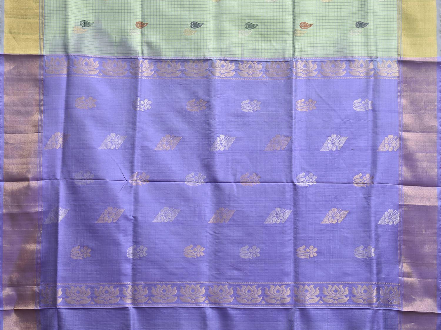Turquoise and Lavender Uppada Silk Handloom Saree with Checks and Buta Design u2499