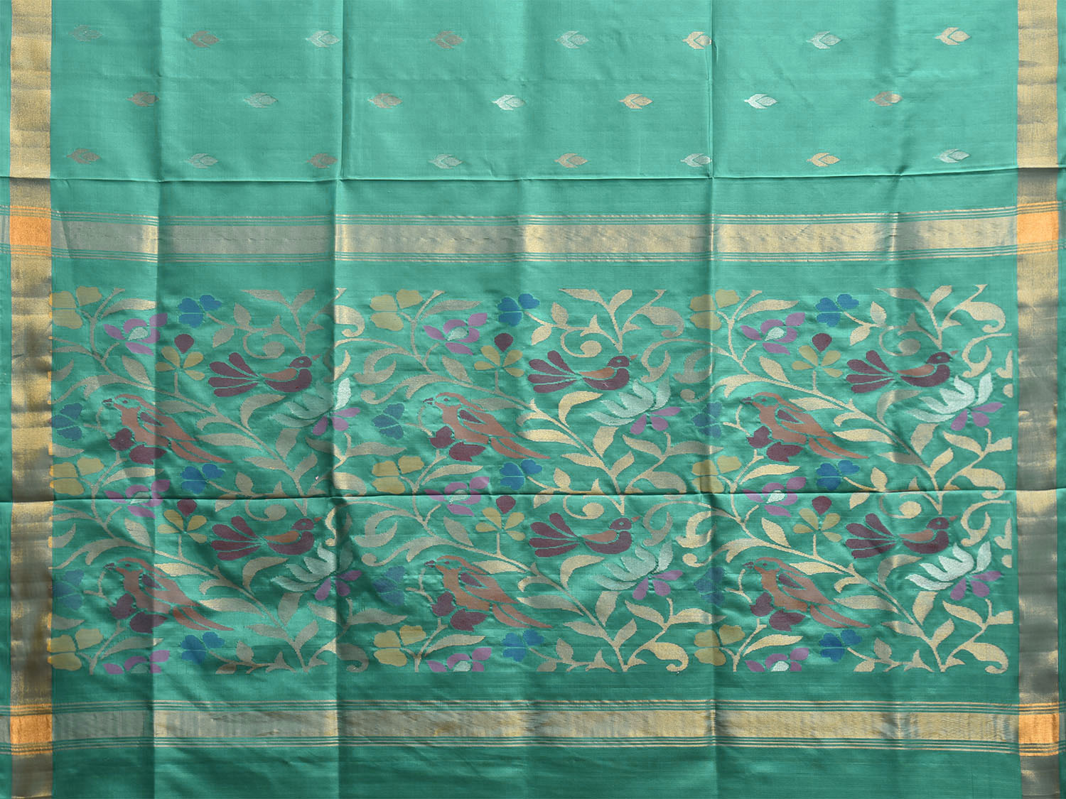 Turquoise Uppada Silk Handloom Saree with Floral and Birds Pallu Design u2491