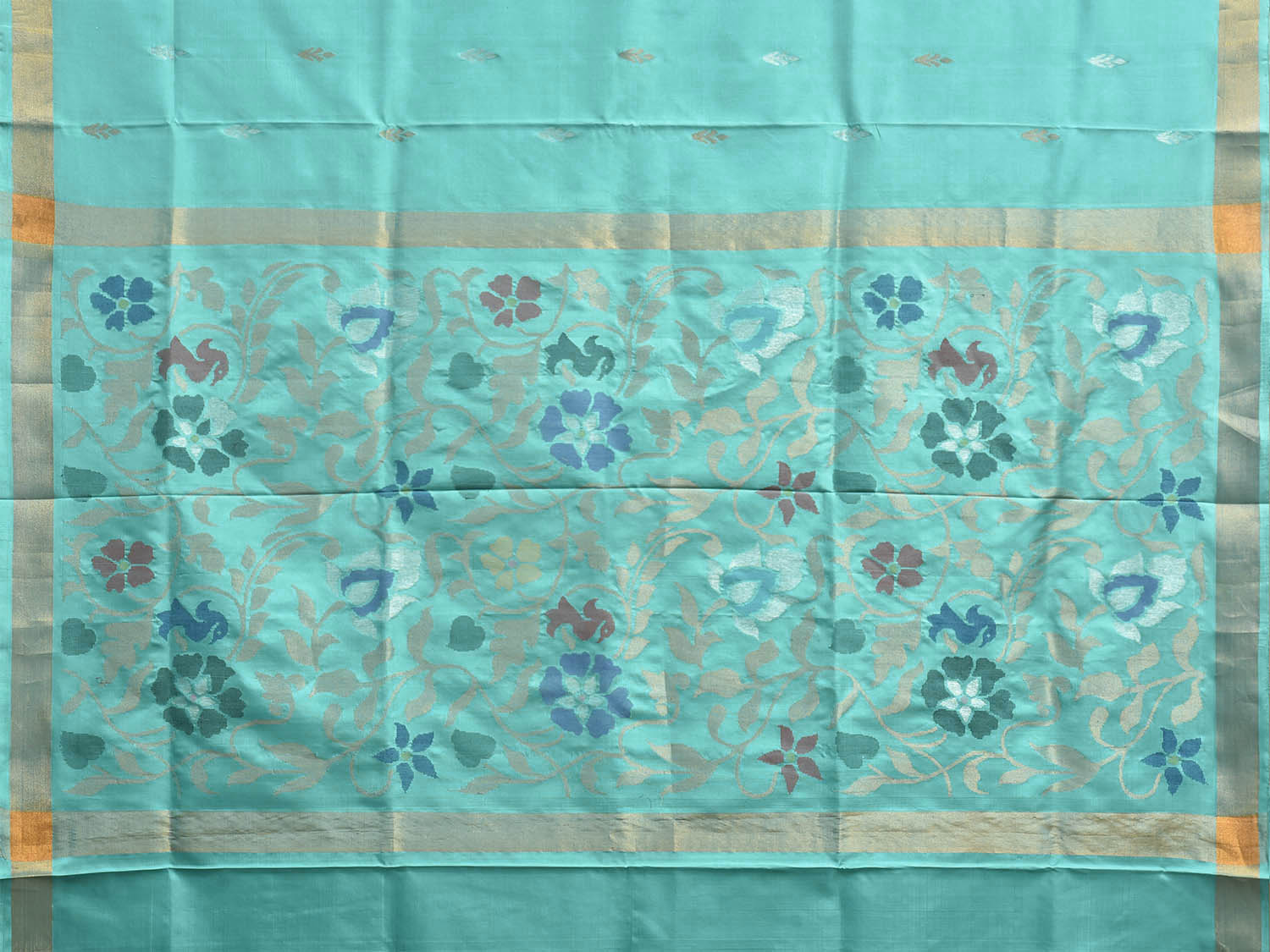 Turquoise Uppada Silk Handloom Saree with Floral Design u2511