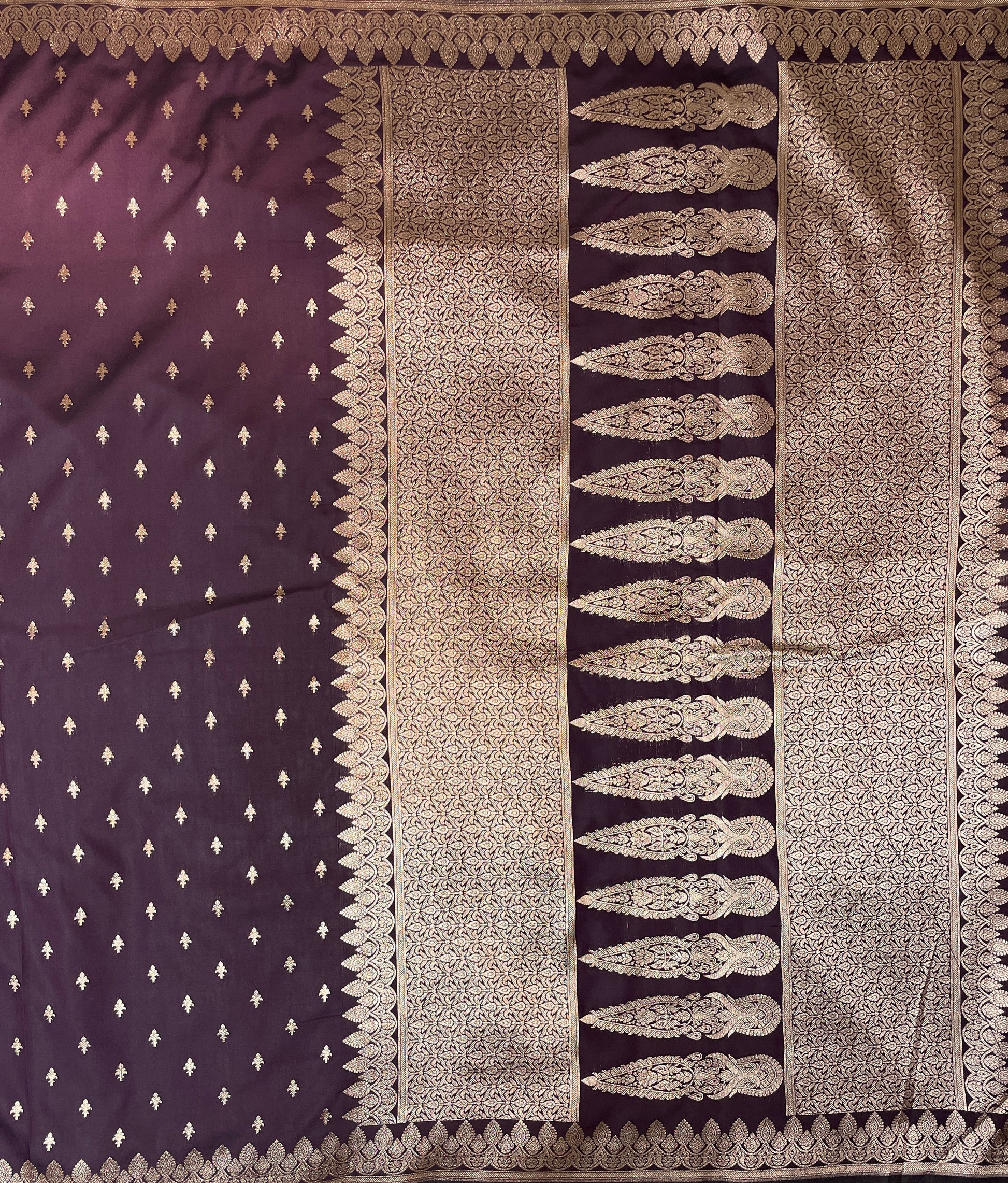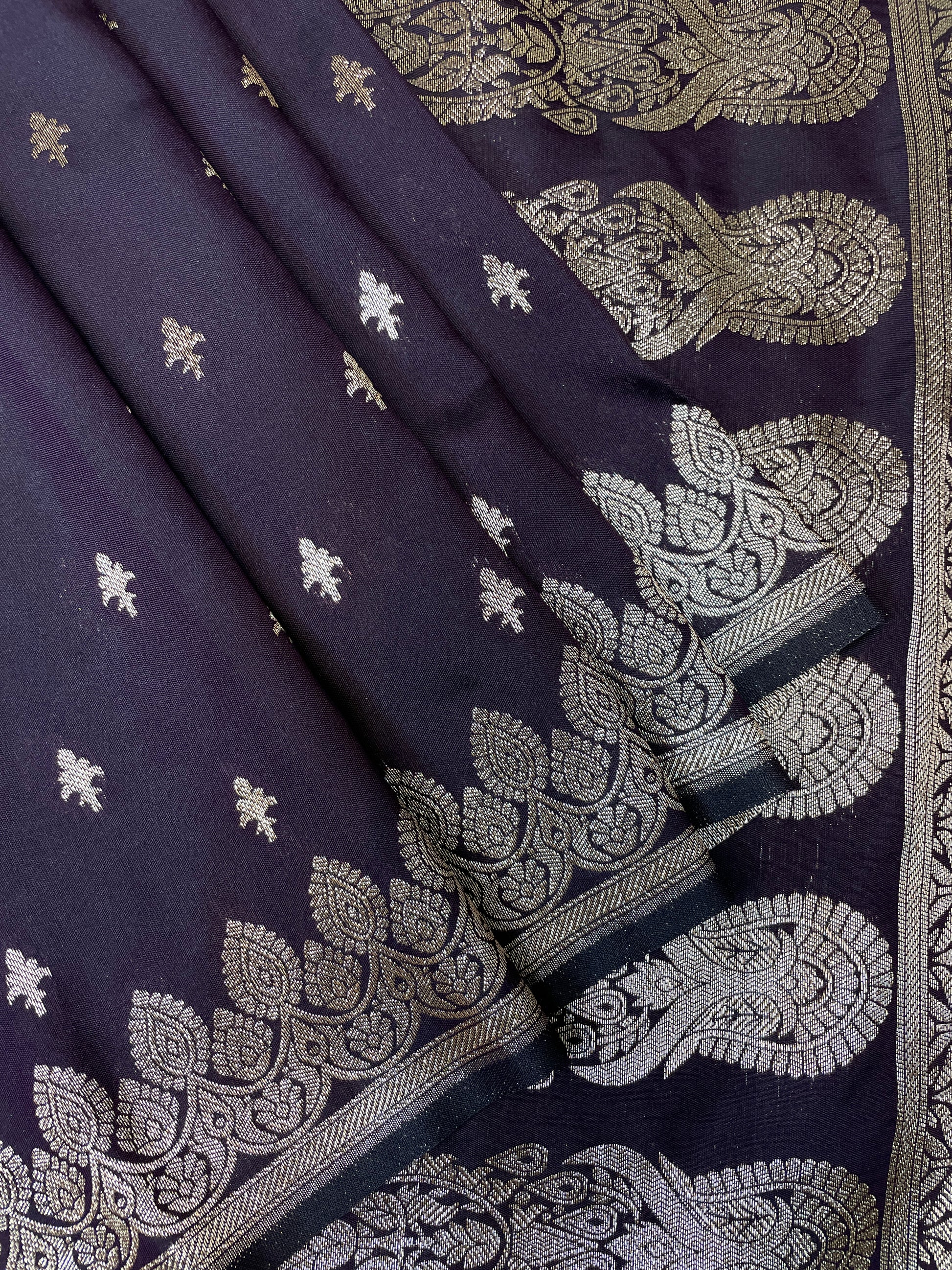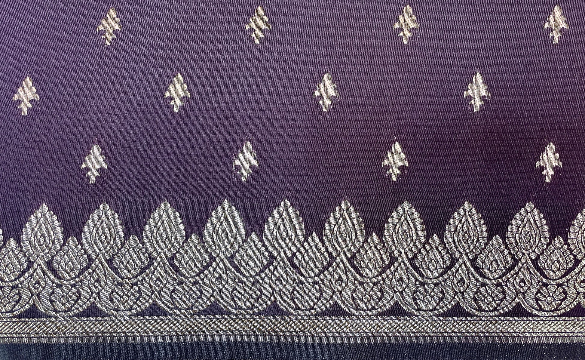 Viloet Katan Banarasi Saree with Silver Zari Floral Weaving And Grand Pallu B0540ds