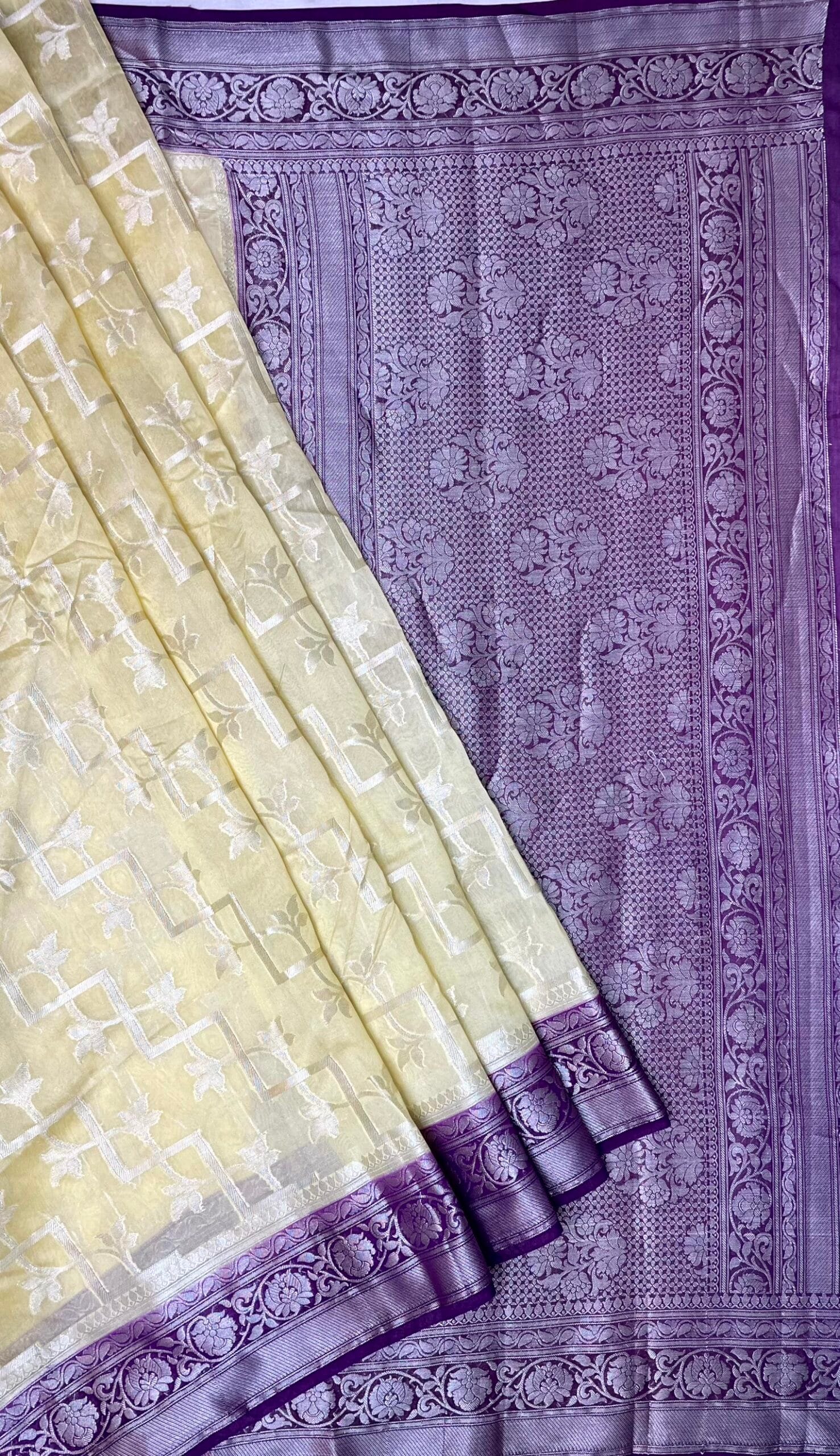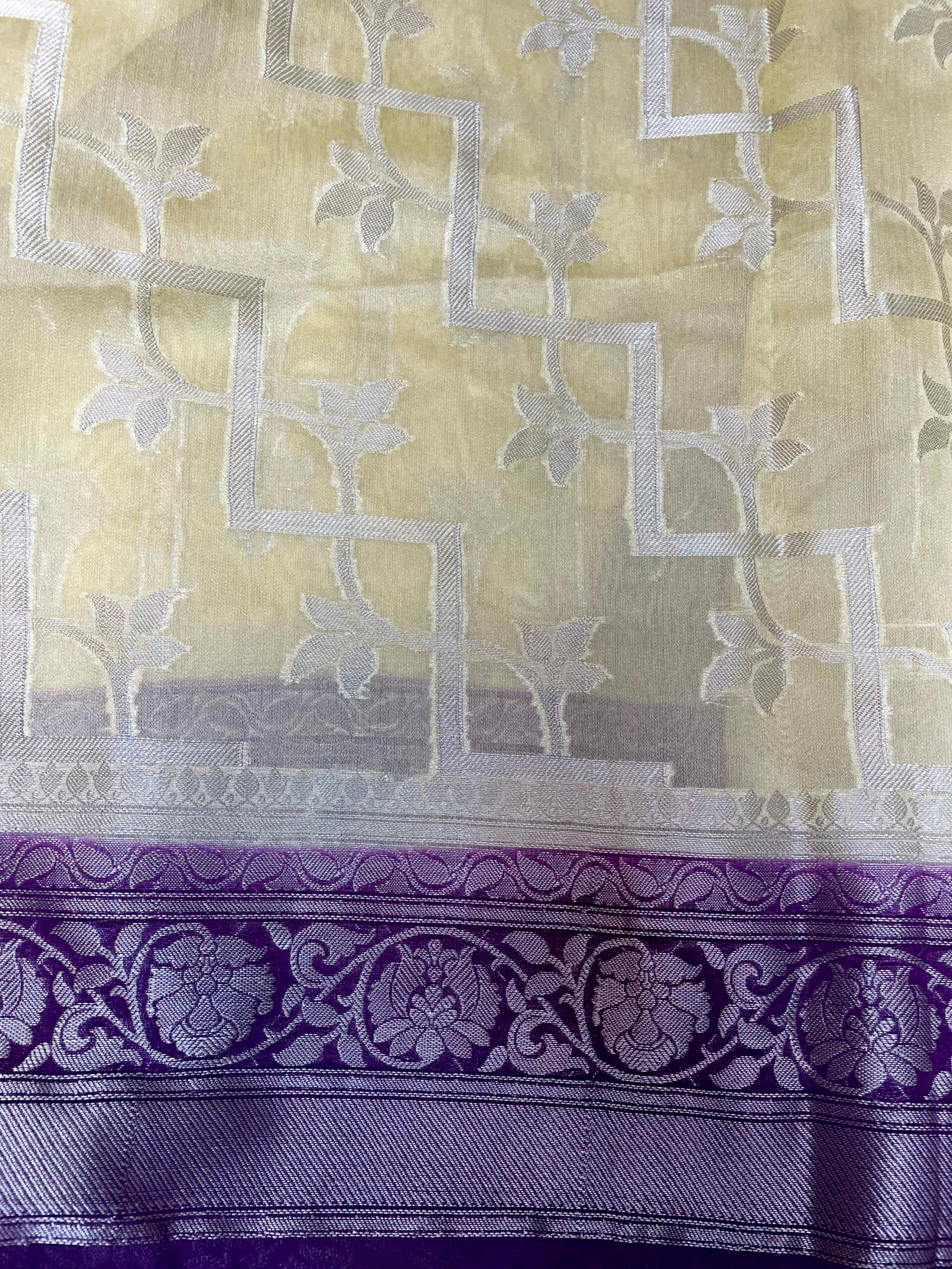 Violet and Beige Black Banaras Georgette with Body Border and Pallu Design