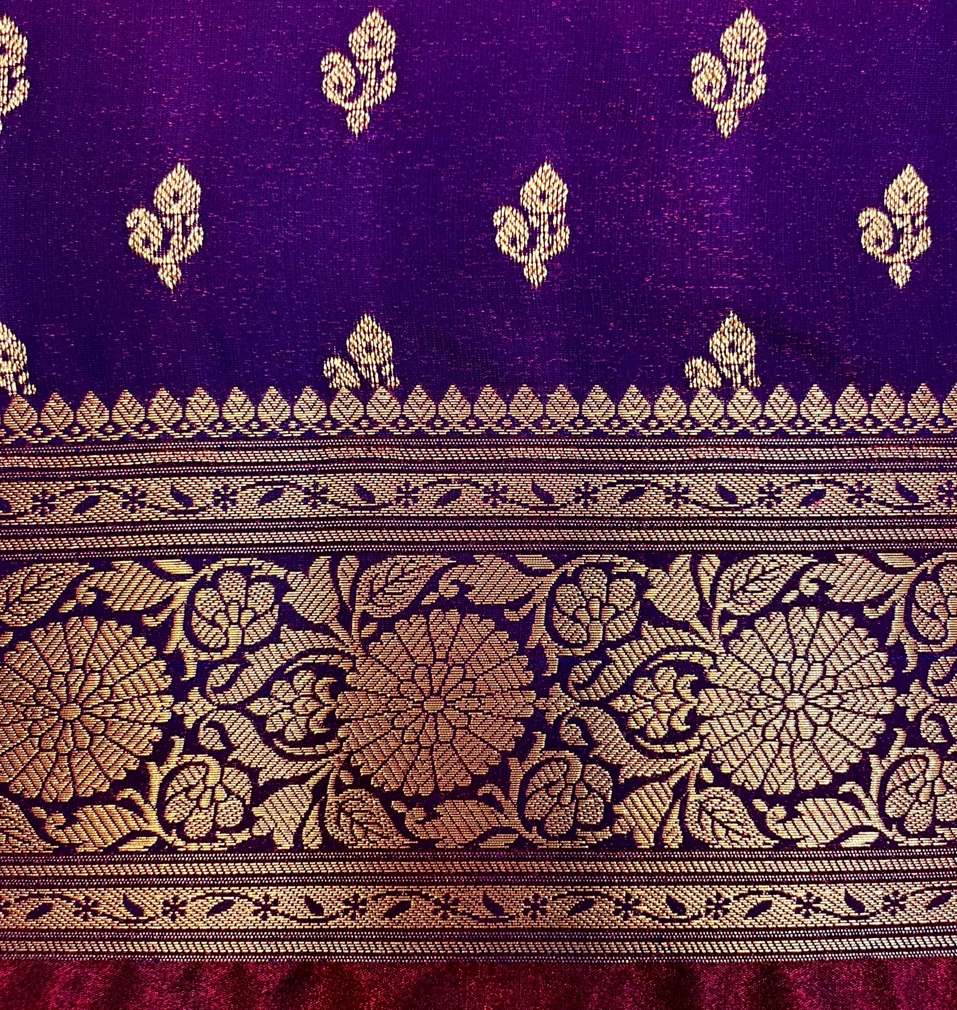 Purple Katan Banarasi Saree with Gold Zari Floral Weaving And Grand Pallu B0650ds