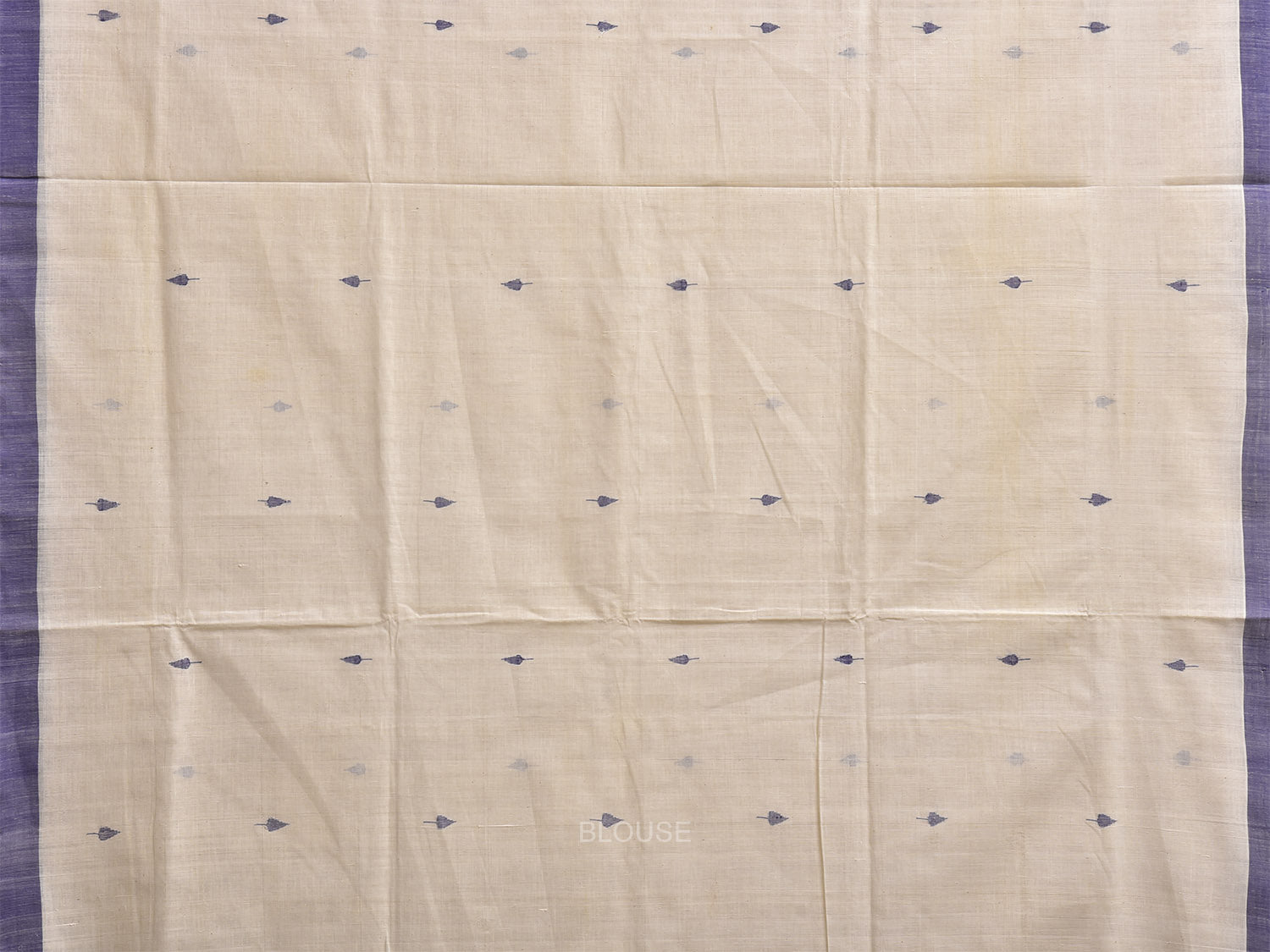 White and Blue Khadi Cotton Handloom Saree with Small Body Buta Design kh0733