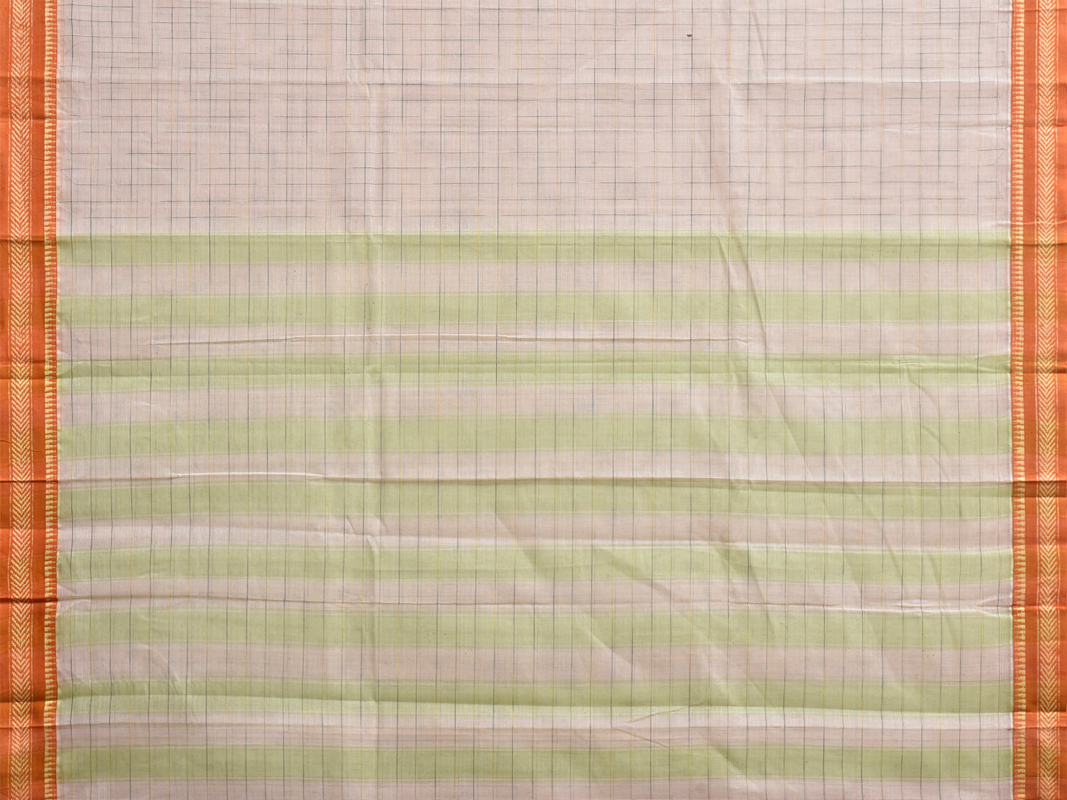 White and Mustard Narayanpet Cotton Handloom Saree with Big Checks Design No Blouse. This saree has no blouse.