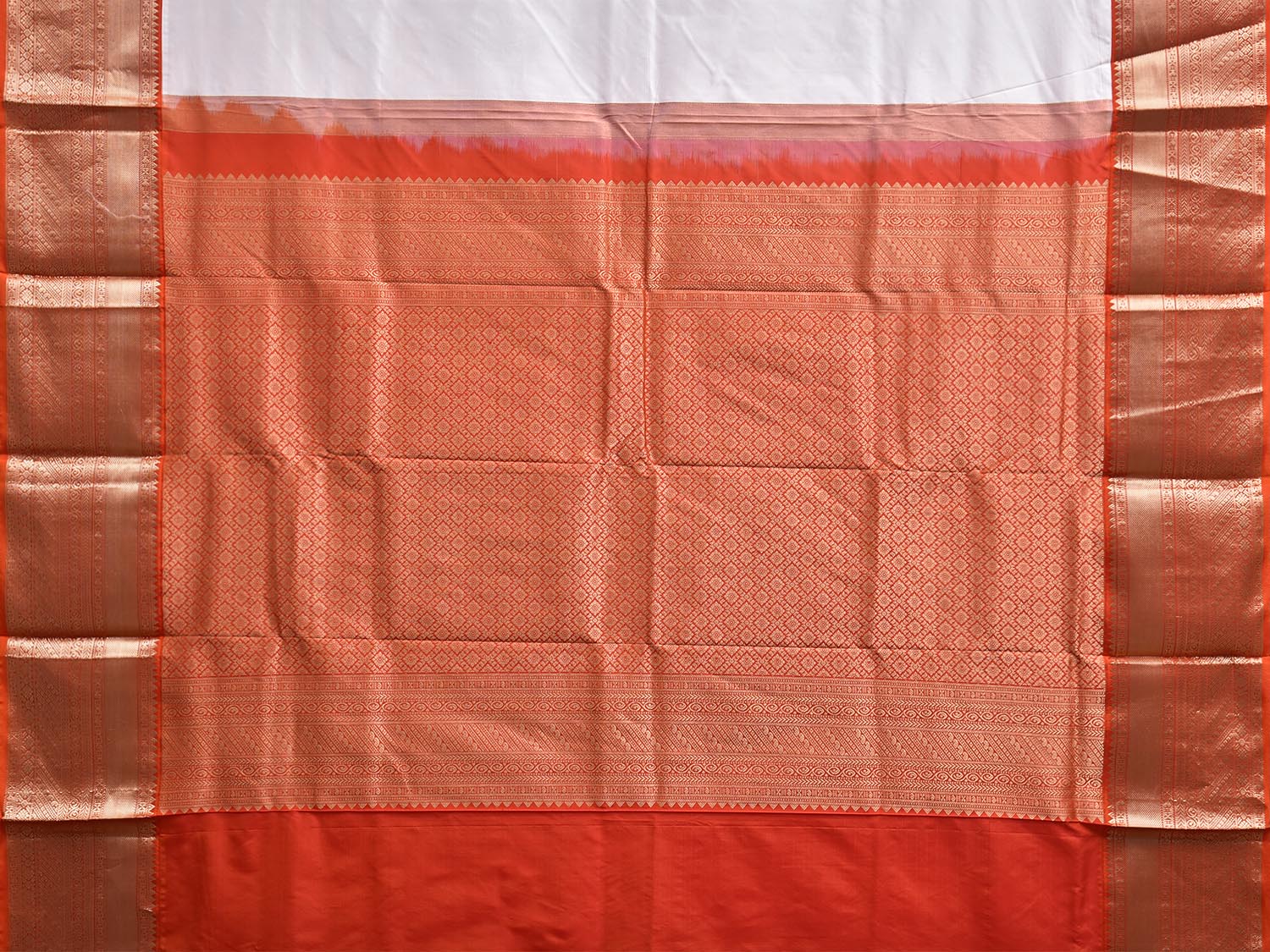 White and Red Kanchipuram Silk Plain Saree with Border and Pallu Design k1059