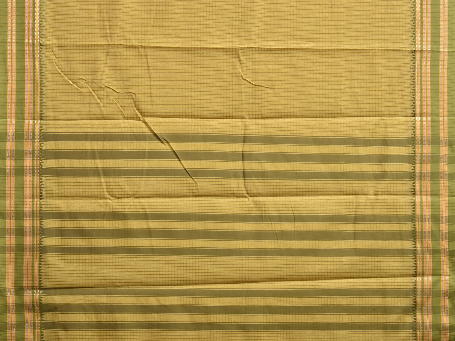 Yellow and Green Bamboo Cotton Saree with Checks Design No Blouse bc1068