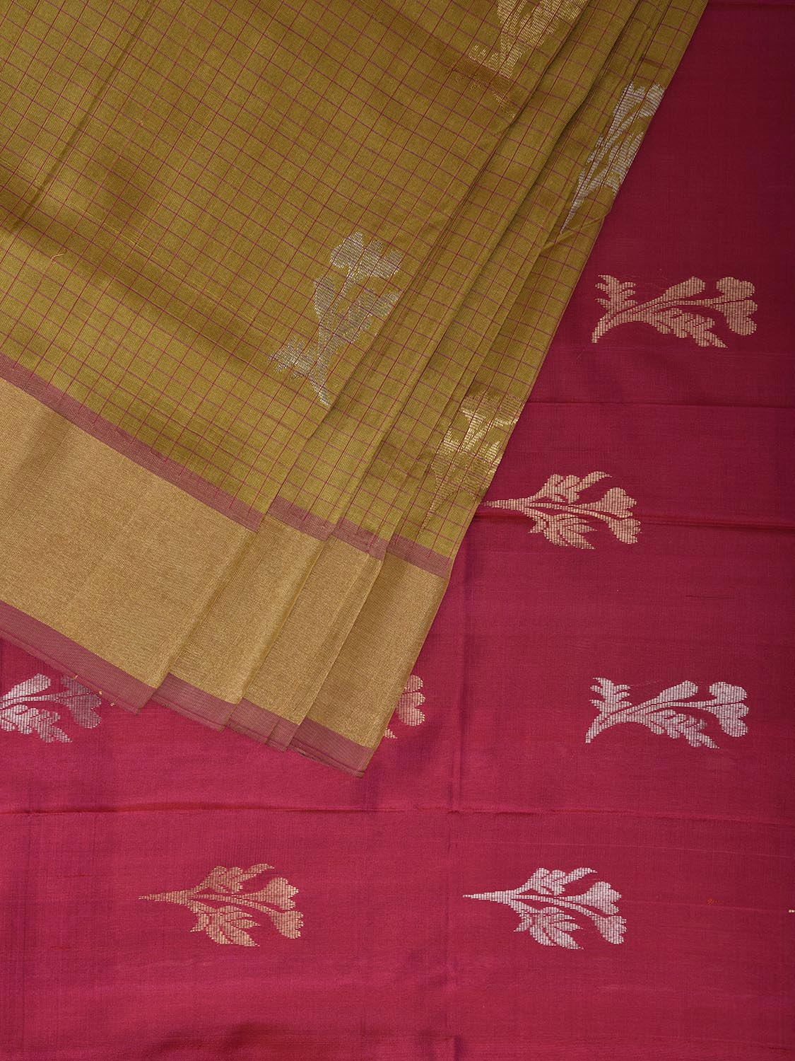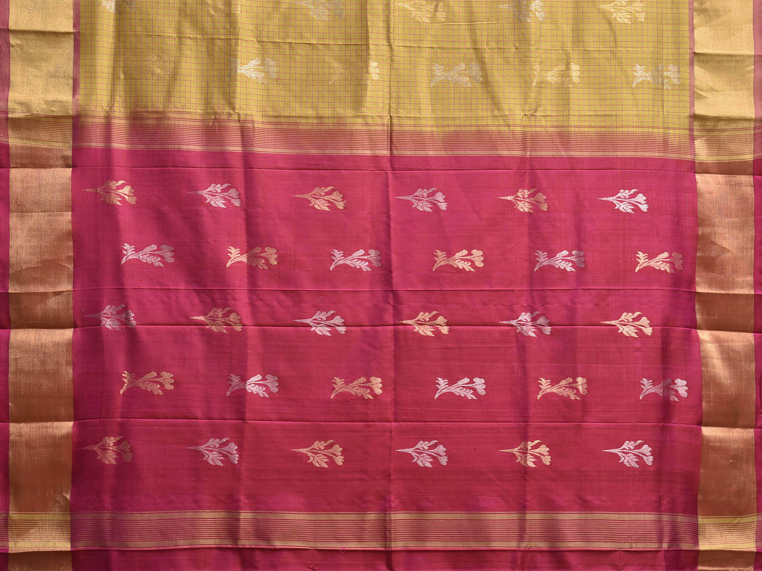 Yellow and Pink Uppada Silk Handloom Saree with Body Buta and Checks Design u2402