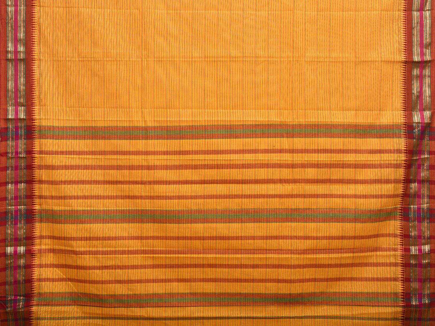Yellow and Red Narayanpet Cotton Handloom Saree with Strips Design No Blouse np0987