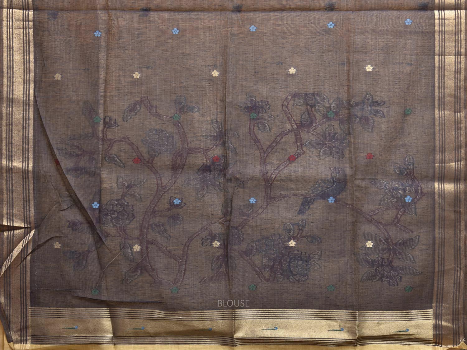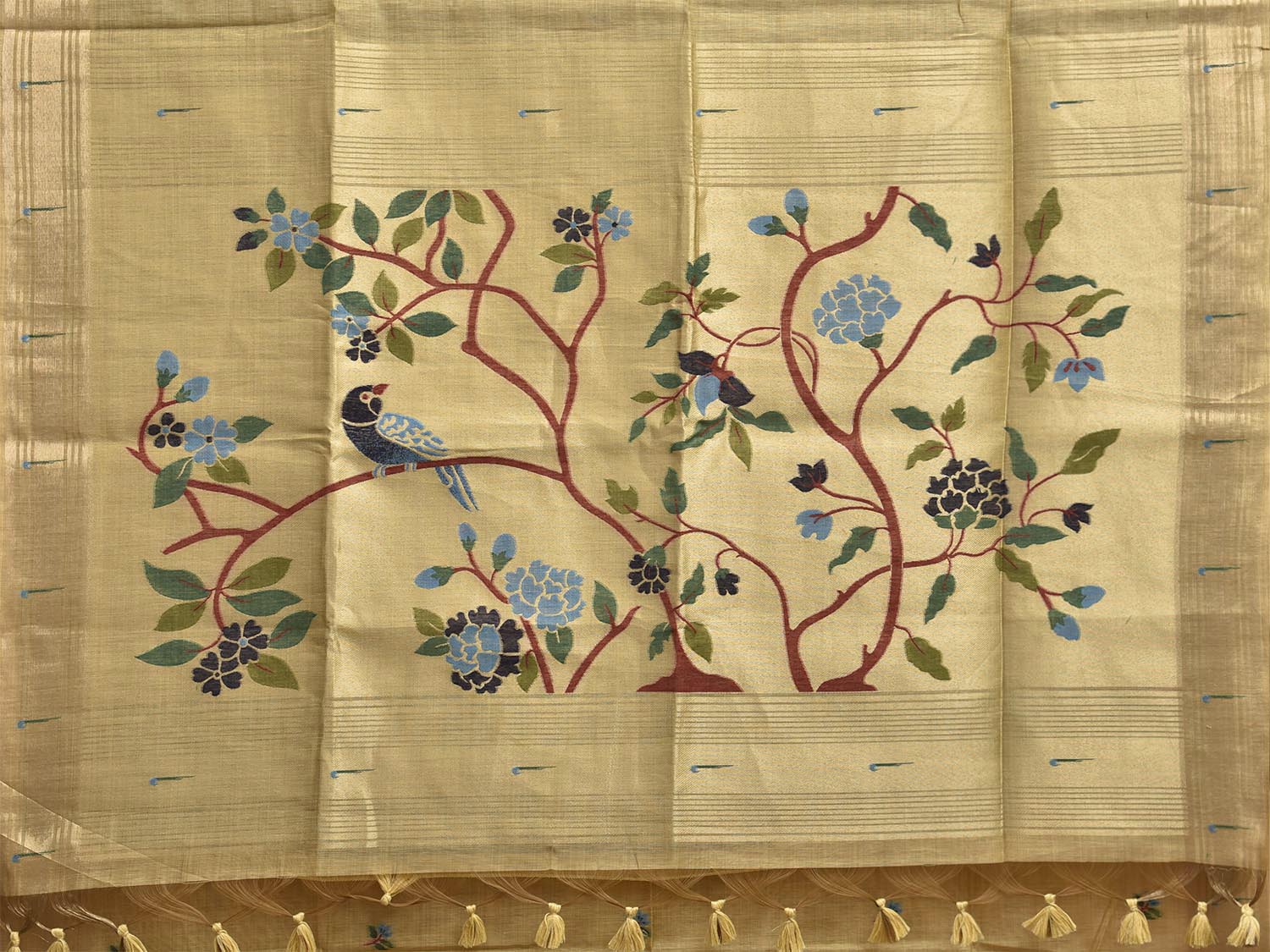 Yellow Dhakai Jamdani Cotton Viscose Saree with Tree and Bird Pallu Design dj0253