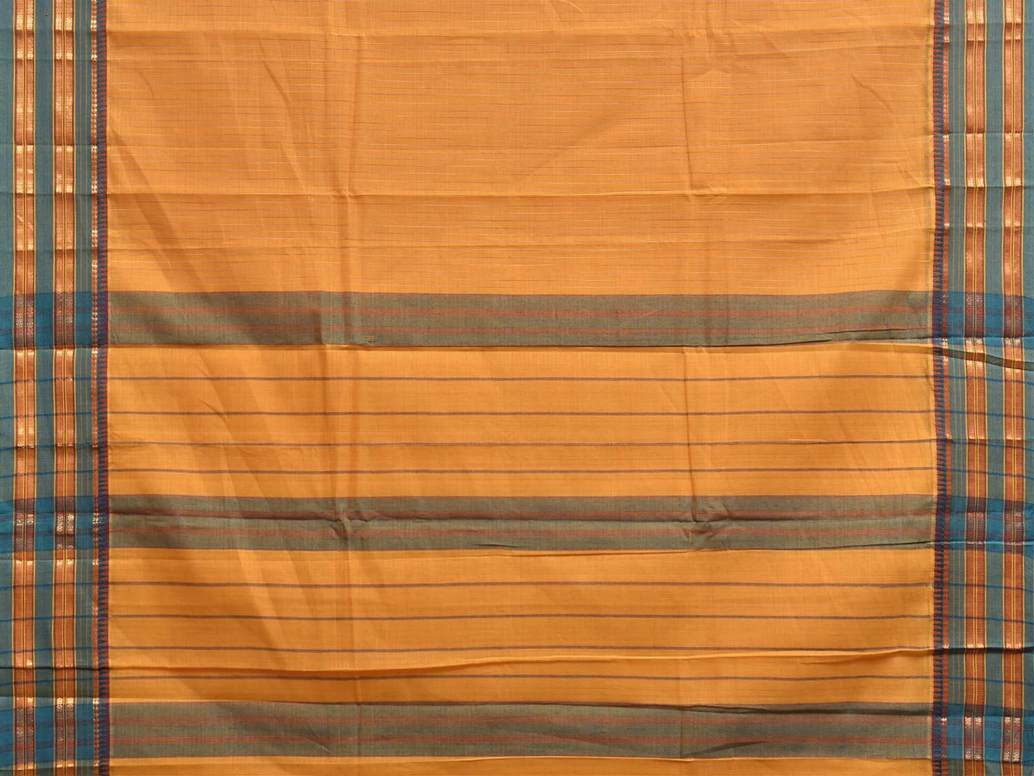 Yellow Narayanpet Cotton Handloom Saree with Strips Design No Blouse.