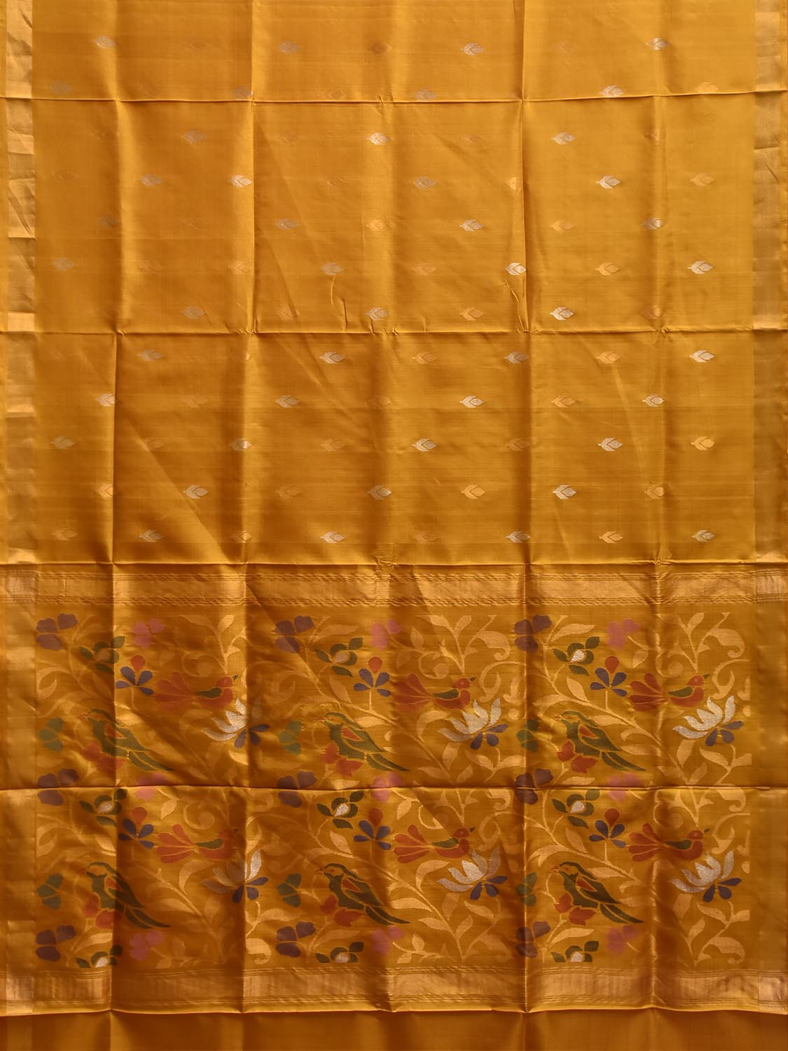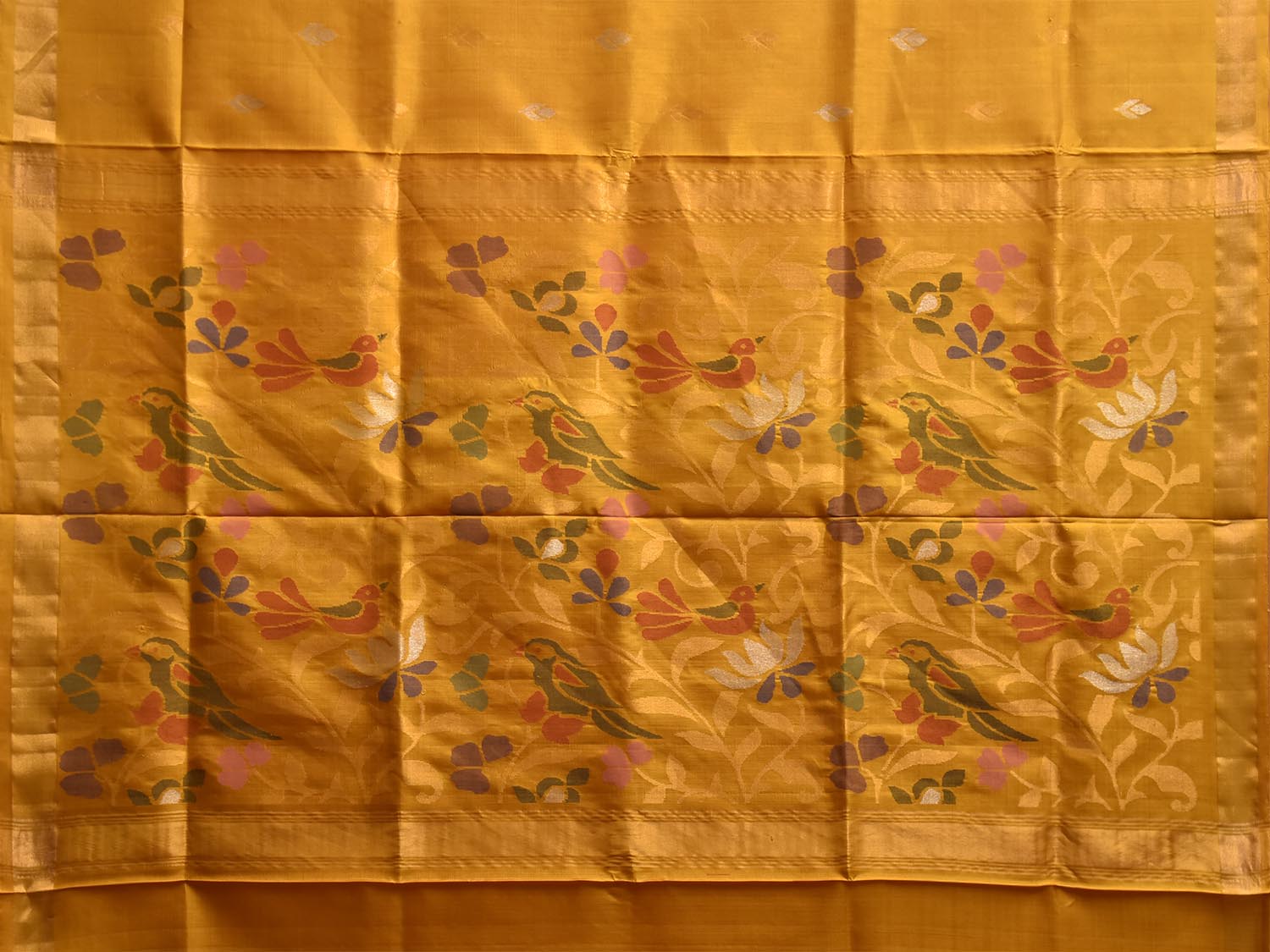 Yellow Uppada Pure Silk Handloom Saree with Floral and Birds Pallu Design u2545